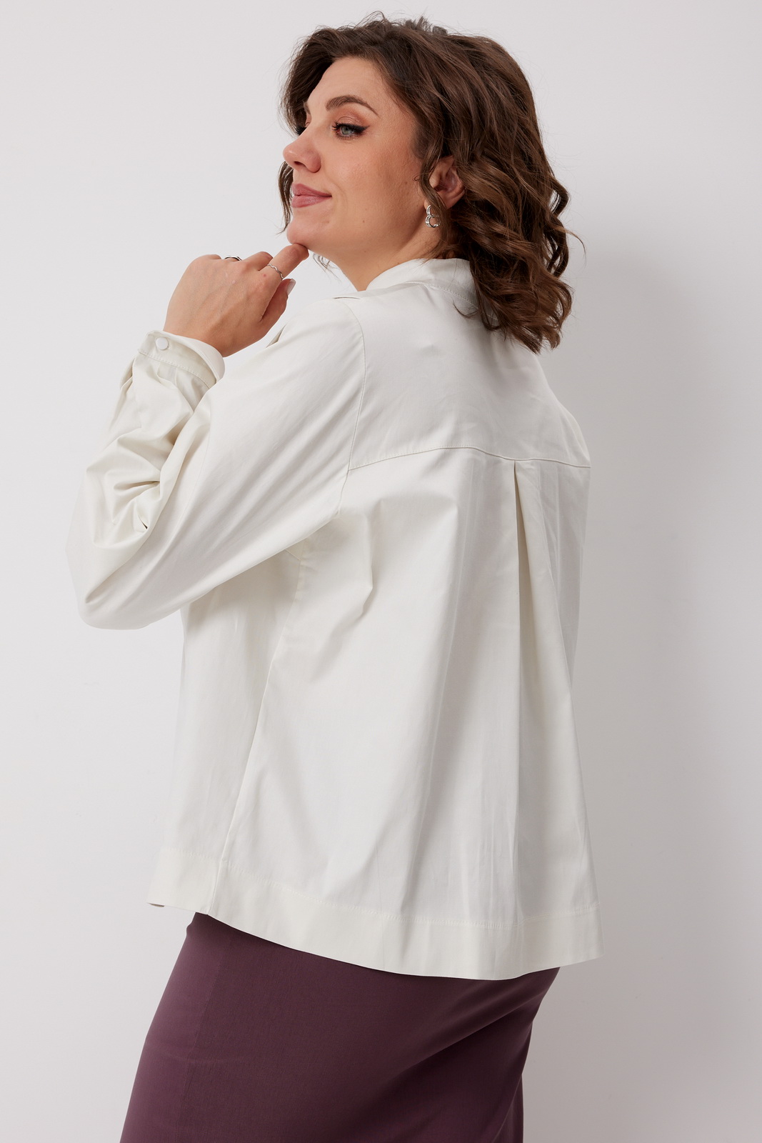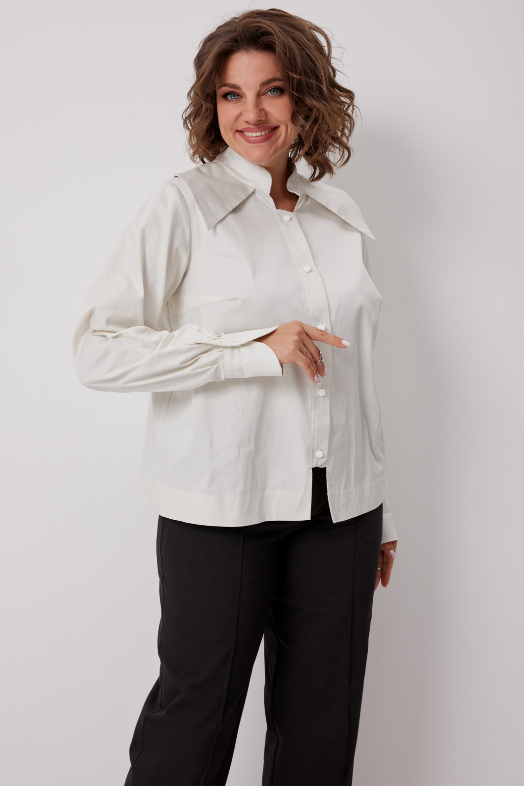 Блуза прямого кроя будет изюминкой вечернего наряда, и в то же время легко впишется в деловой гардероб, добавляя в образ нотку женственности и роскоши. Модель выполнена из приятного хлопка средней плотности, который идеально держит форму, при этом остаётся приятным к телу и комфортным в течение всего дня.