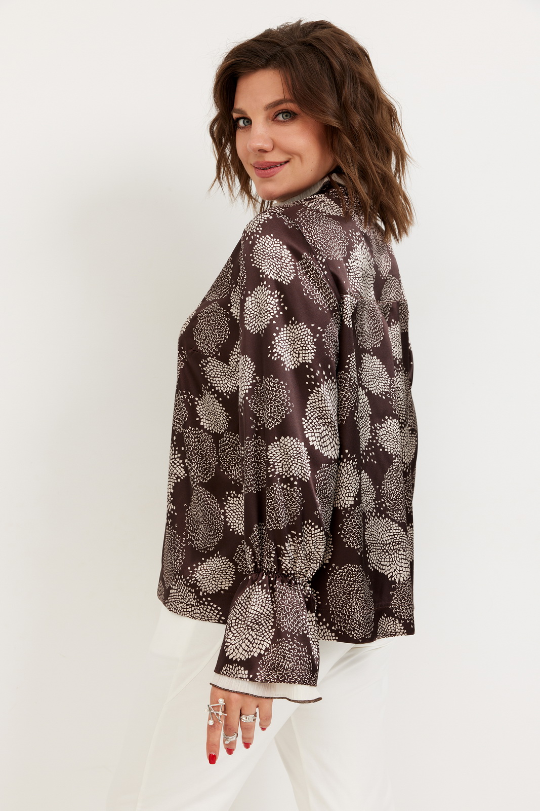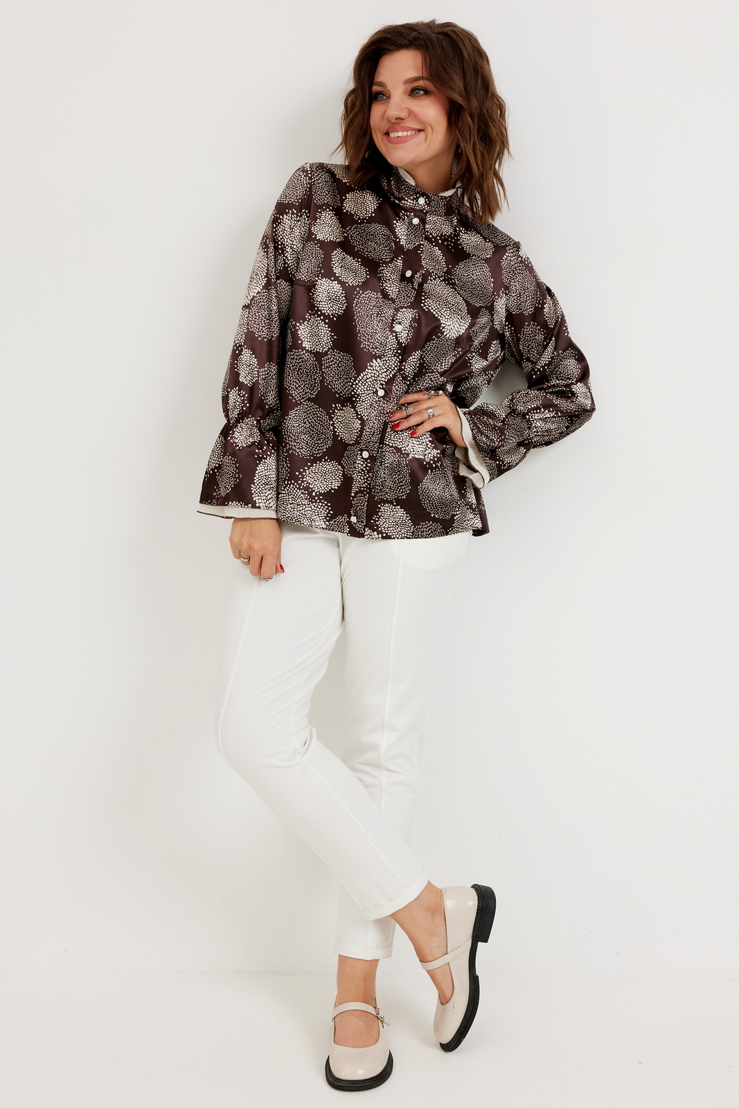 Описание:Если Вы мечтаете о блузе, которая подчеркнёт Вашу женственность и добавит образу элегантность, у нас есть готовое решение! Эта блуза из мягкой ткани с переливом в глубоком шоколадном цвете с нежной шифоновой отделкой – именно то, что Вам нужно! Мягкий блеск роскошной ткани, изящные элементы отделки придают Вашему образу утончённость и лоск во время вечернего выхода, деловой встречи либо отдыха с друзьями в любимом кафе.