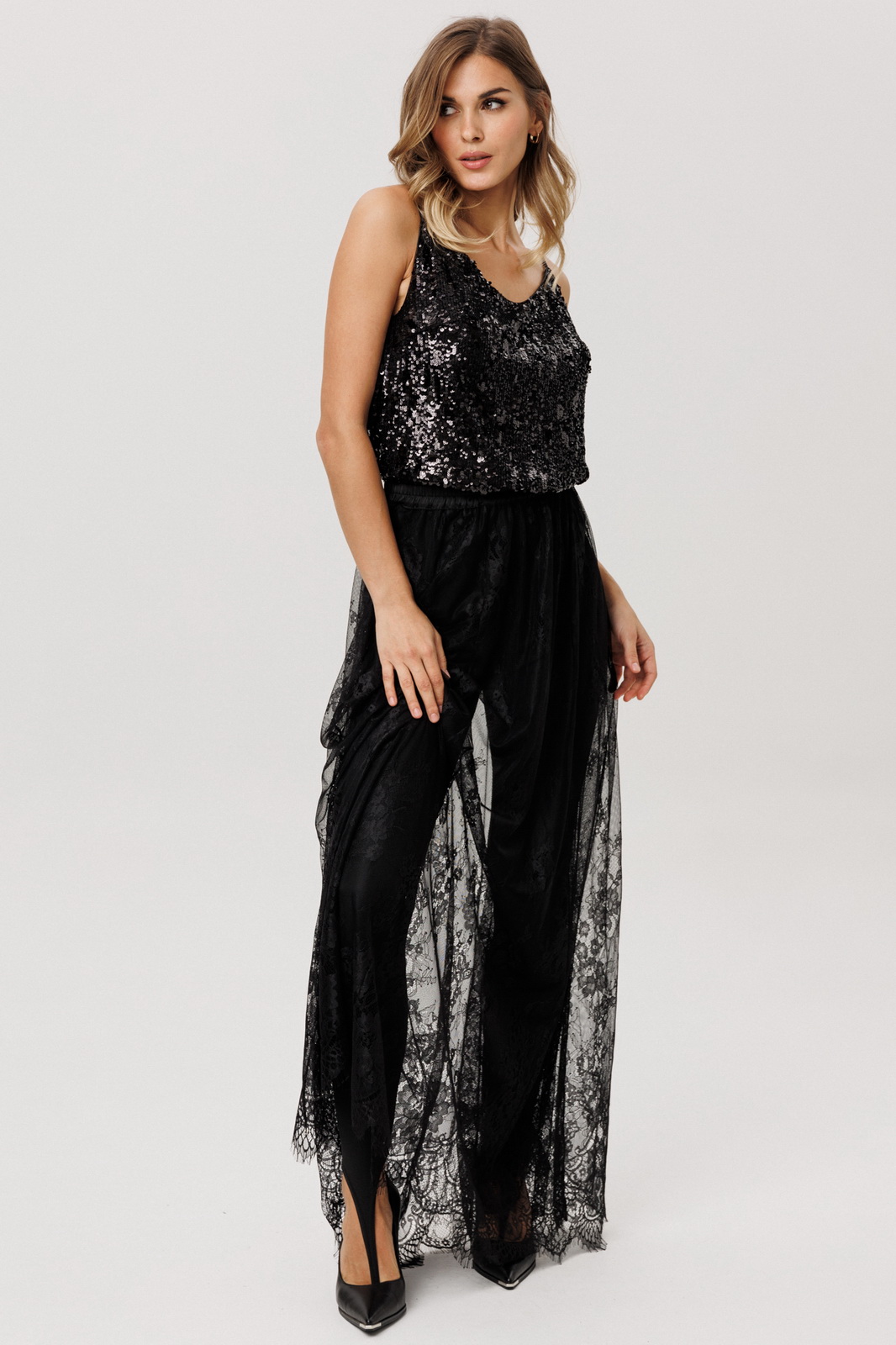 Описание: Топ выполнен из трикотажного полотна с пайетками. Топ прямого силуэта, длиной выше линии бедер. Топ на отлетной по низу подкладке. Бретели регулируемые по длине.
