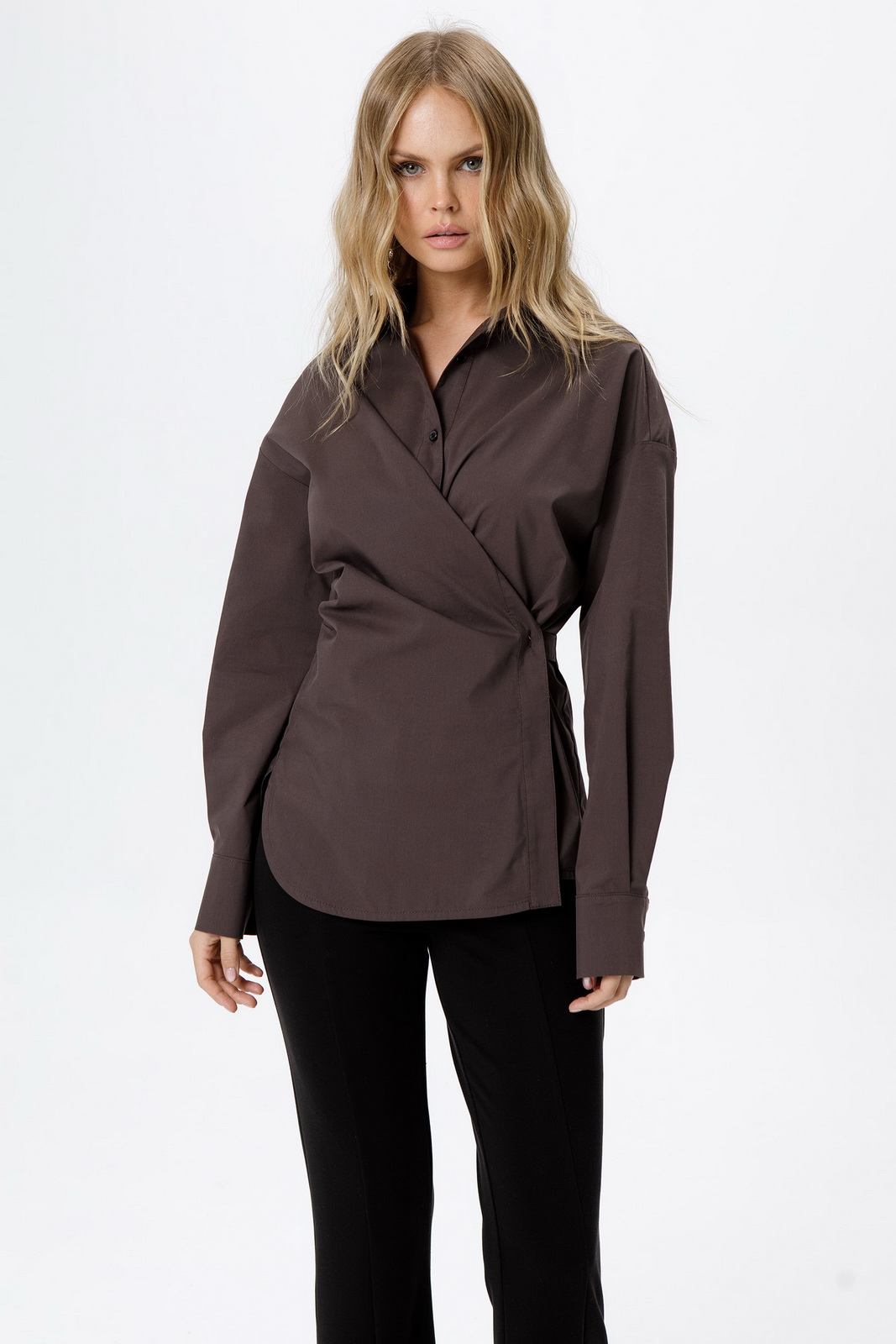 Описание: Асимметричная приталенная рубашка из хлопковой ткани.