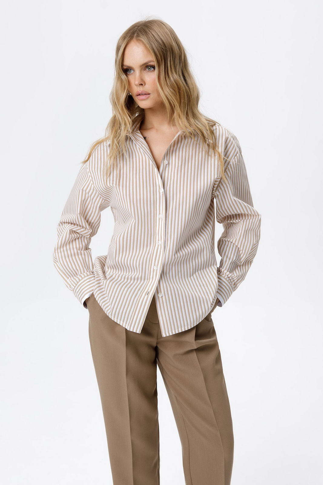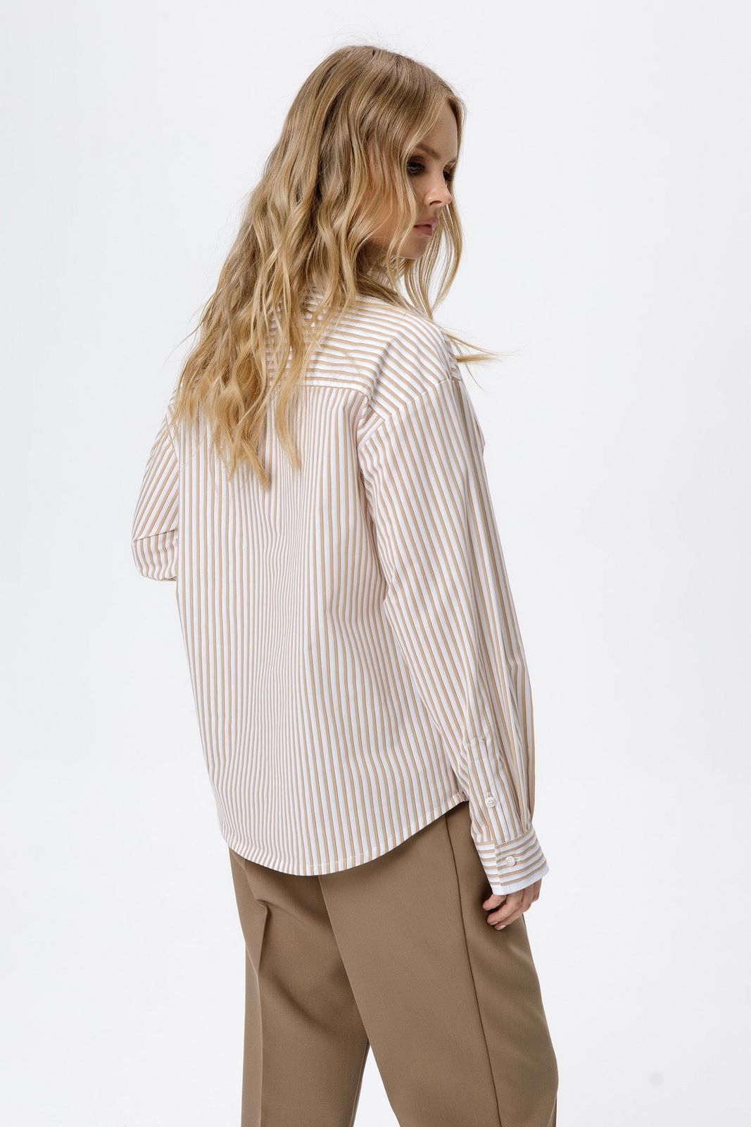 Описание: Хлопковая свободная рубашка в полоску с двойными воротниками и манжетами.