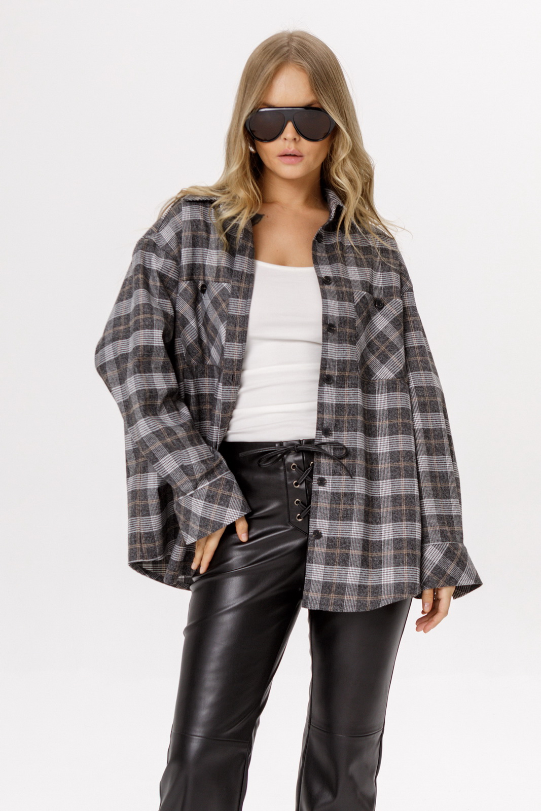 Описание: Оверсайз рубашка в клетку(приобрести брюки с фото можно по арт. 6522, приобрести баску с фото можно по арт. 6551).