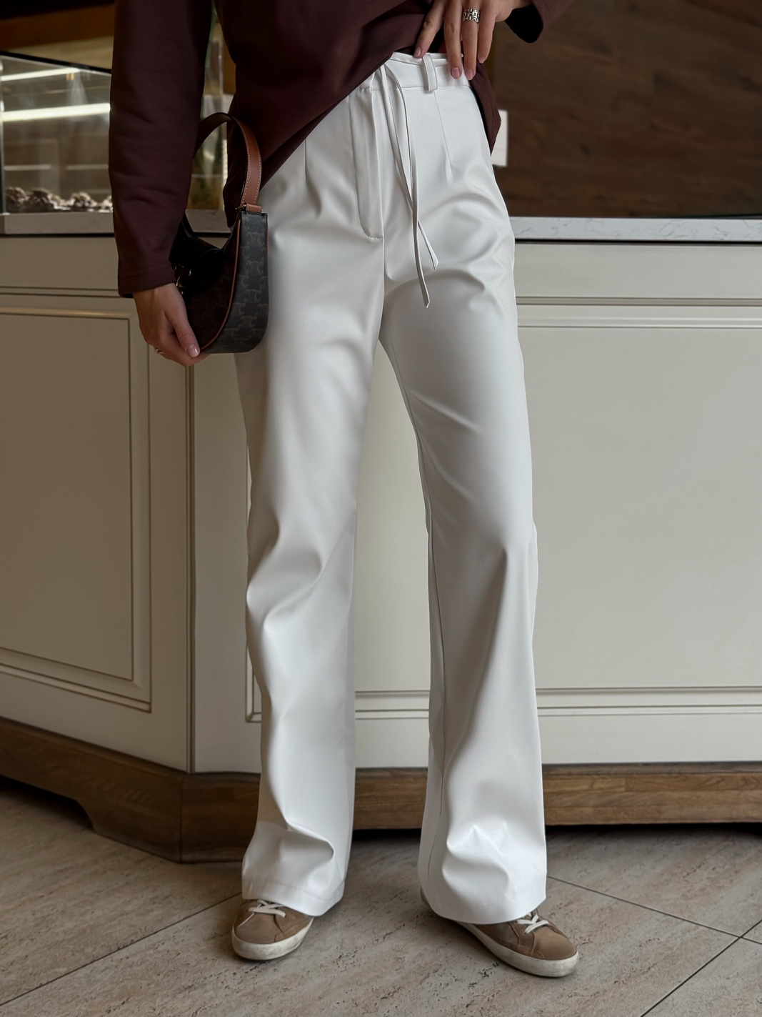 Описание: Эти брюки станут глотком свежего воздуха среди широких силуэтов и брюк палаццо. Их облегающий крой подчёркивает линию бедёр и тали, а затем изящно расклешается от колена.Такой фасон позволит скорректировать фигуру. Выполнены из практичной экокожи. Удобство в уходе позволяет носить их в самые слякотные дни.