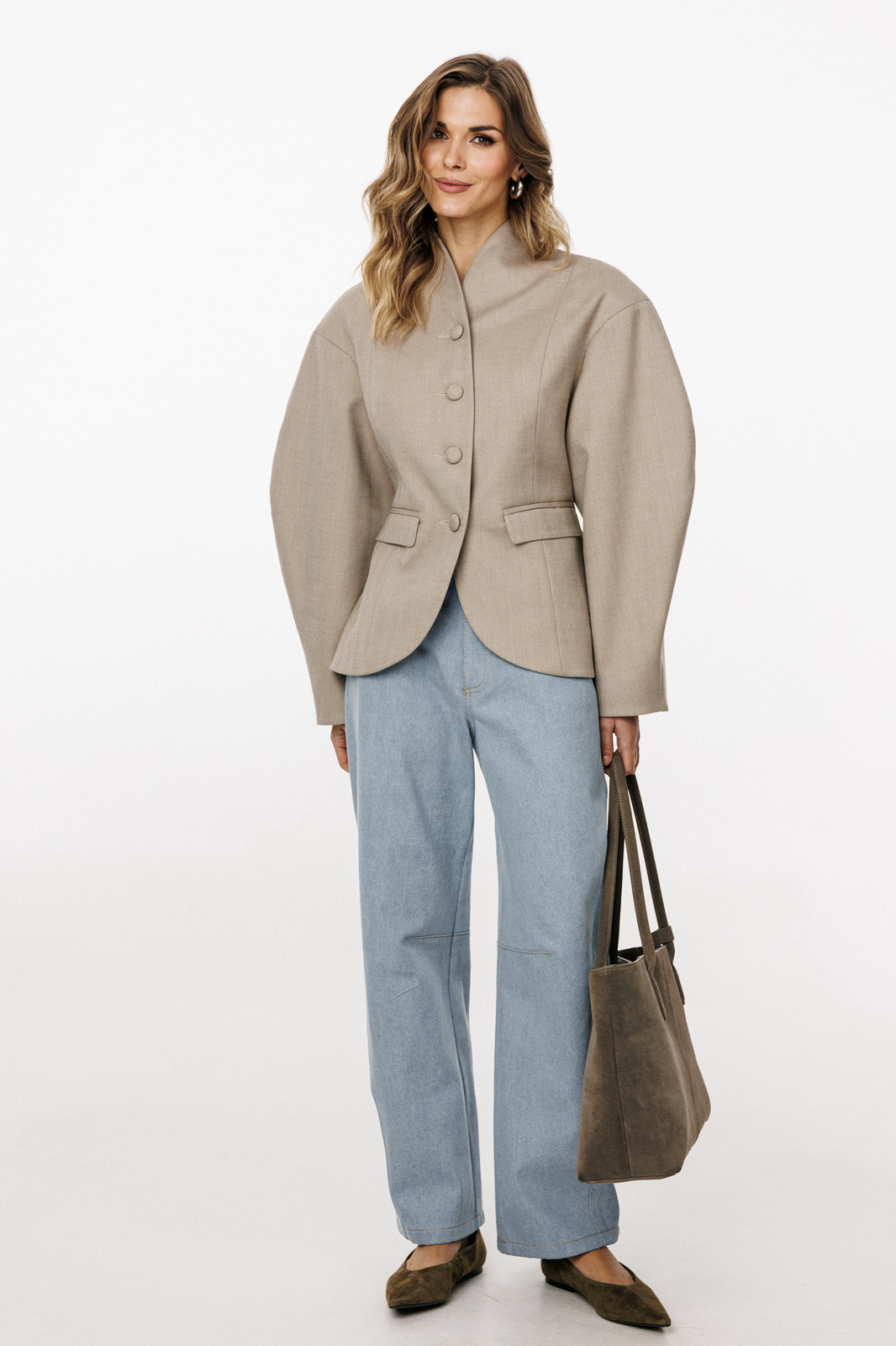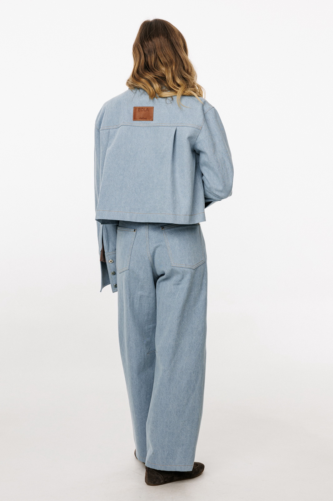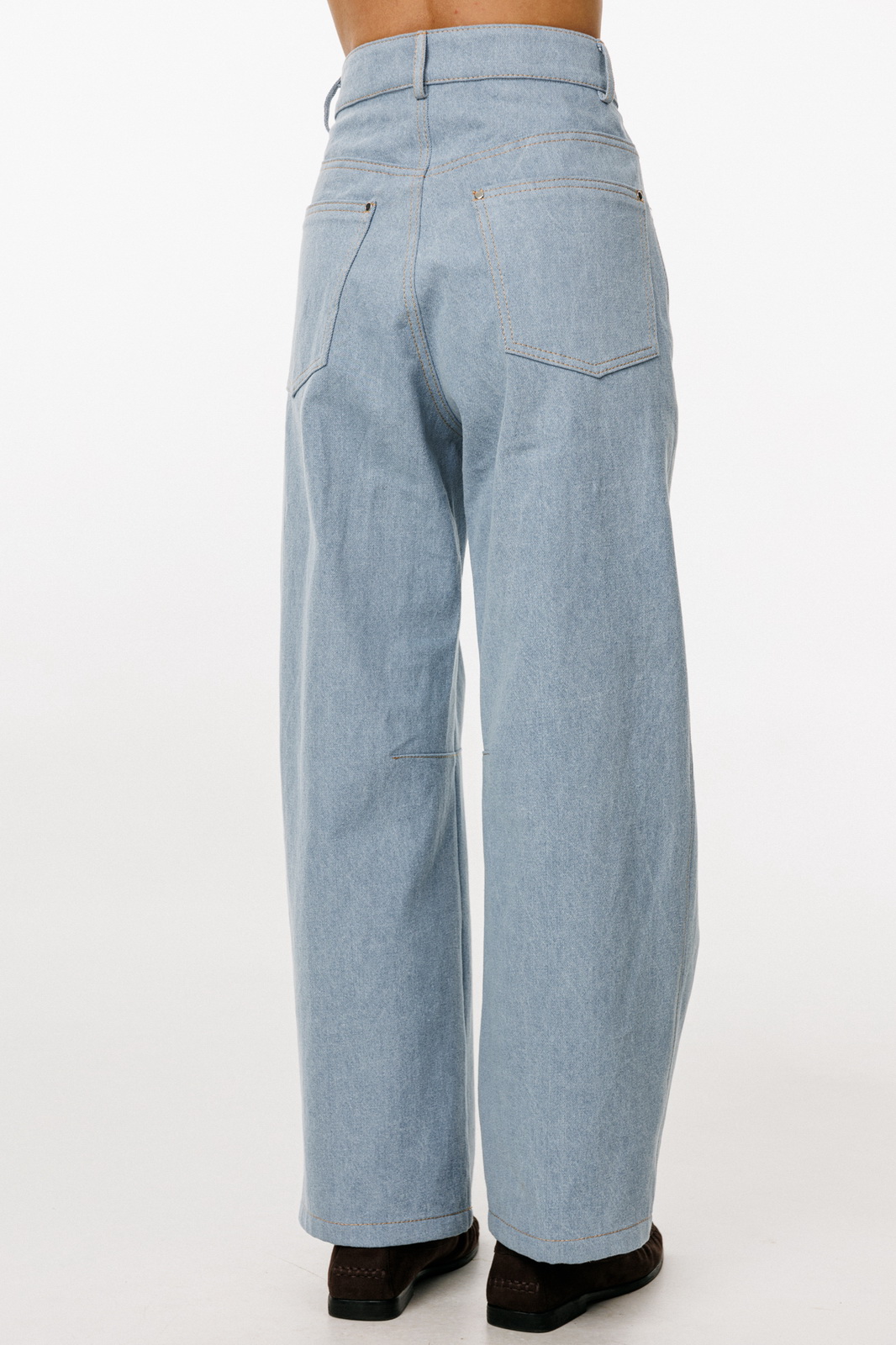 Описание: Джинсы-багги выполнены из плотного джинса. Брюки на притачном поясе, длиной до линии щиколотки, расширенные от бедер и слегка зауженные к низу. Спереди боковые карманы с фигурным входом. Застежка на пуговицу и молнию с гульфиком. На задних частях кокетки и накладные карманы. На передней и задней части коленные вытачки.