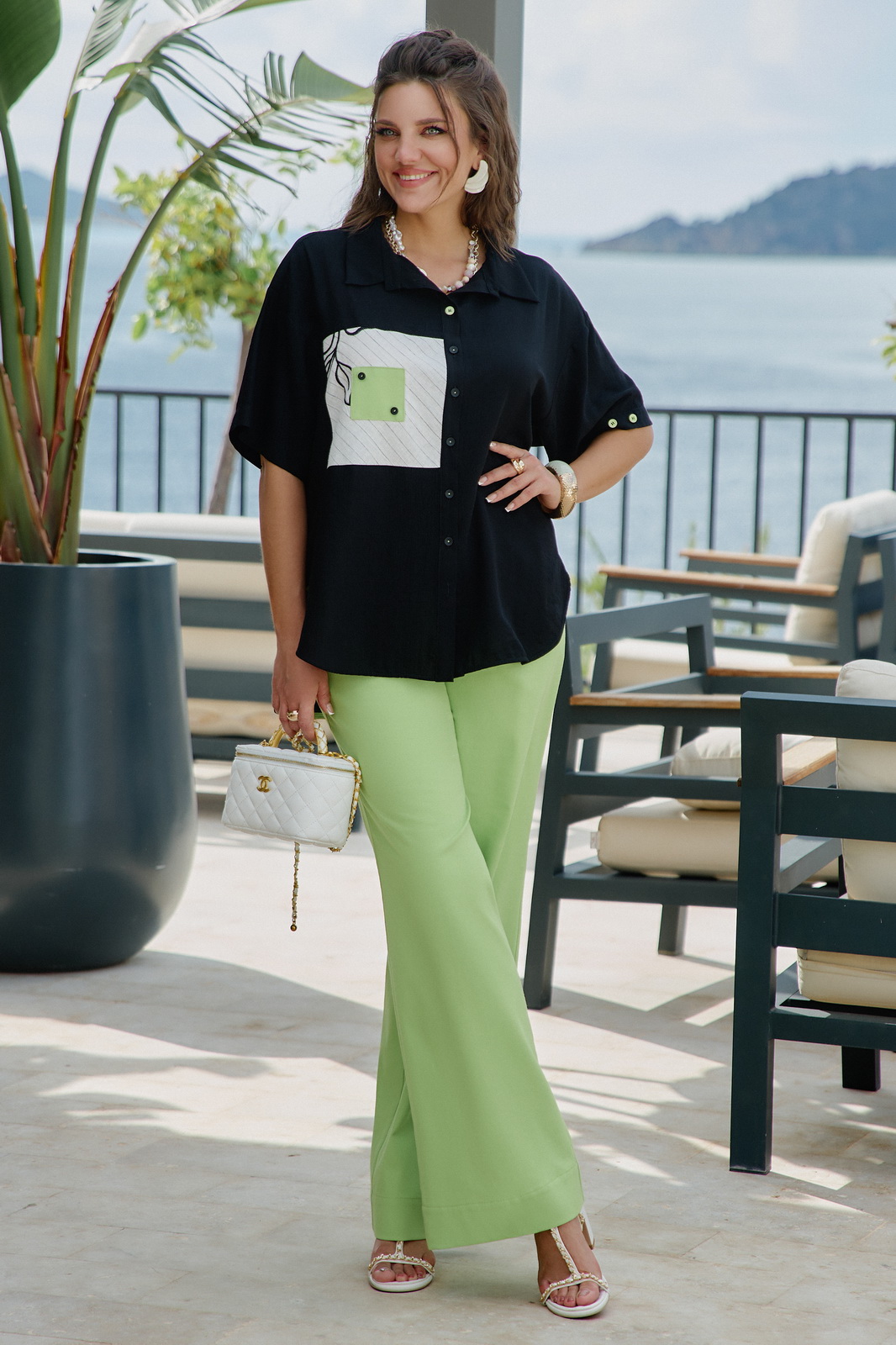 Описание: Салатовые брюки — это не просто модный тренд, а инвестиция в летнее настроение. Их прямой крой делает их универсальными, а яркий цвет — запоминающимися. Ключ к успешной стилизации — баланс: позвольте брюкам быть главным акцентом, а всё остальное пусть будет их достойной поддержкой. Помните, лето — время для экспериментов, и эти брюки станут идеальным полем для цветовых игр и стилистических открытий. Брюки прямого силуэта с притачным поясом на эластичной тесьме-резинке, которая обеспечивает максимально удобную посадку на любой тип фигуры. По переду брюк прорезные карманы.