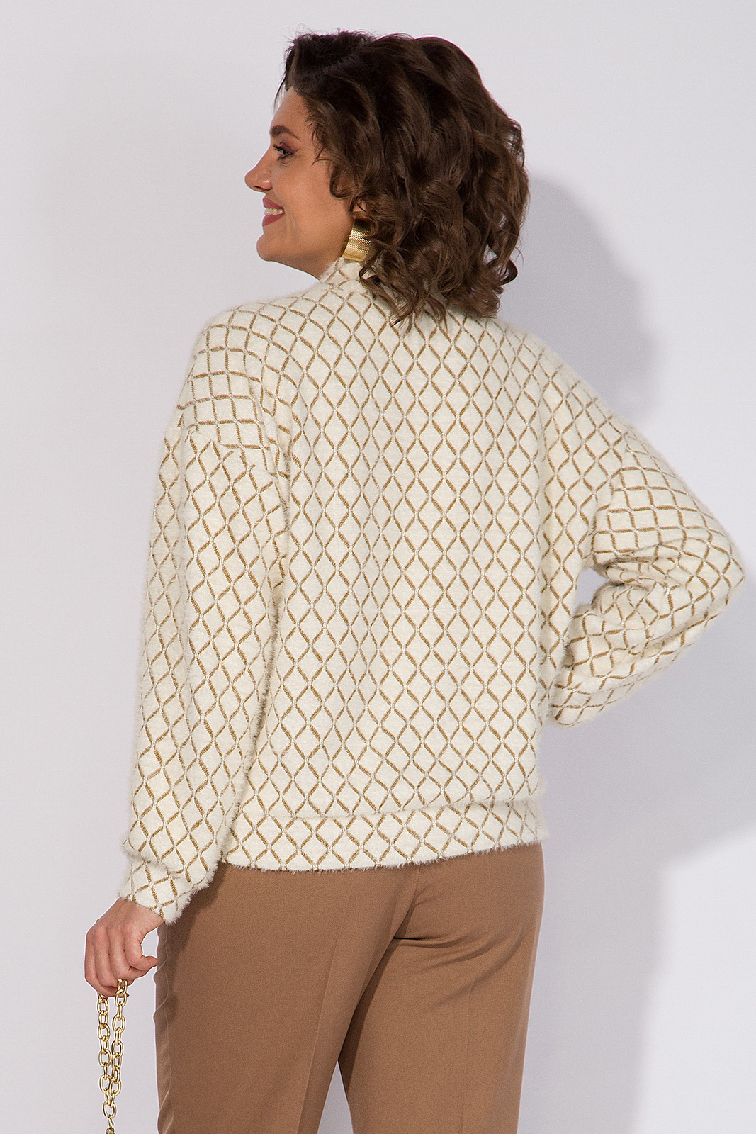 Описание: Мягкий и уютный джемпер в стиле «OLD MONEY» выполнен из трикотажа с эффектом ангоры с рисунком. Эффектная V-образна горловина, переходящая в мягкую стойку. Плечевой пояс спущенный, с рукавом полной длины. Низ изделия и низ рукава оформлен притачными манжетами из основной ткани. Спинка без особенностей.