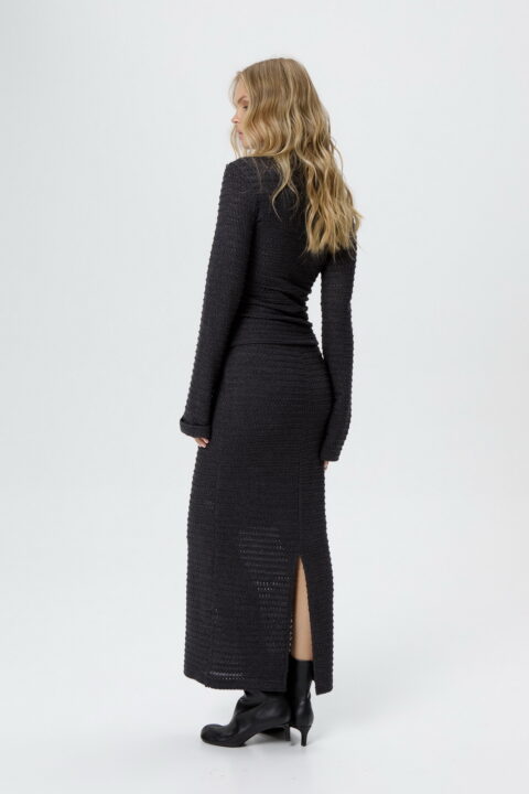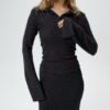 Детали: прилегающий силуэт, воротник с застежкой-поло,длинные расширенные к низу рукава.