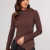 Описание: Джемпер трикотажный полуприлегающего силуэта с втачным одношовным рукавом, низ рукава фигурный. Полочка с фигурным низом и правый боковой шов к низу слегка переходит на перед. По переду нашивка “BUTER”. Горловина, расширенная с невысокой цельнокроеной стойкой.