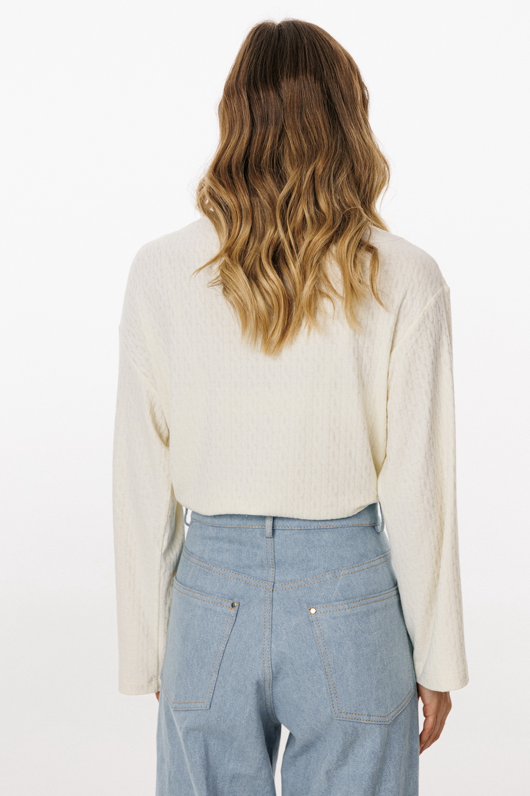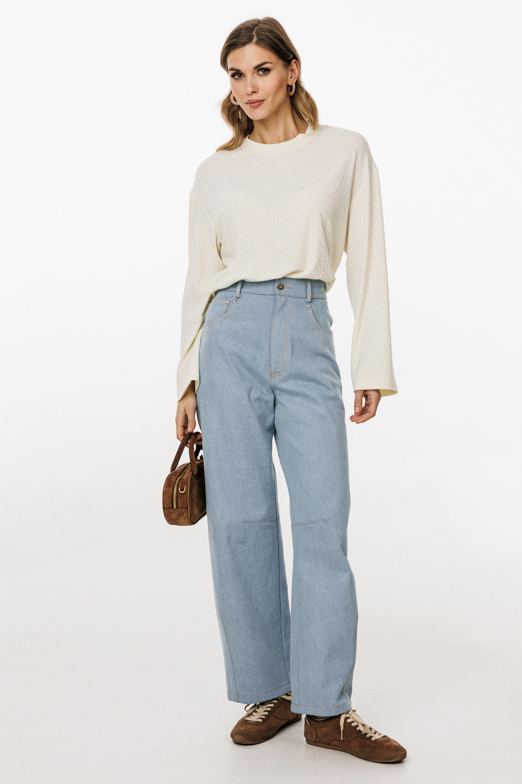 Описание: Джемпер выполнен из трикотажного полотна с рисунком. Джемпер прямого силуэта, длиной до линии бедра. Перед и спинка цельные. Горловина округлой формы, обработана широкой бейкой. Плечевой шов удлинен. Рукав одношовный, прямой.