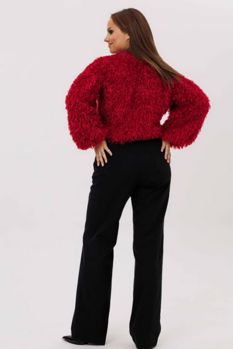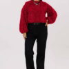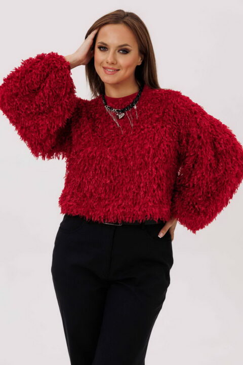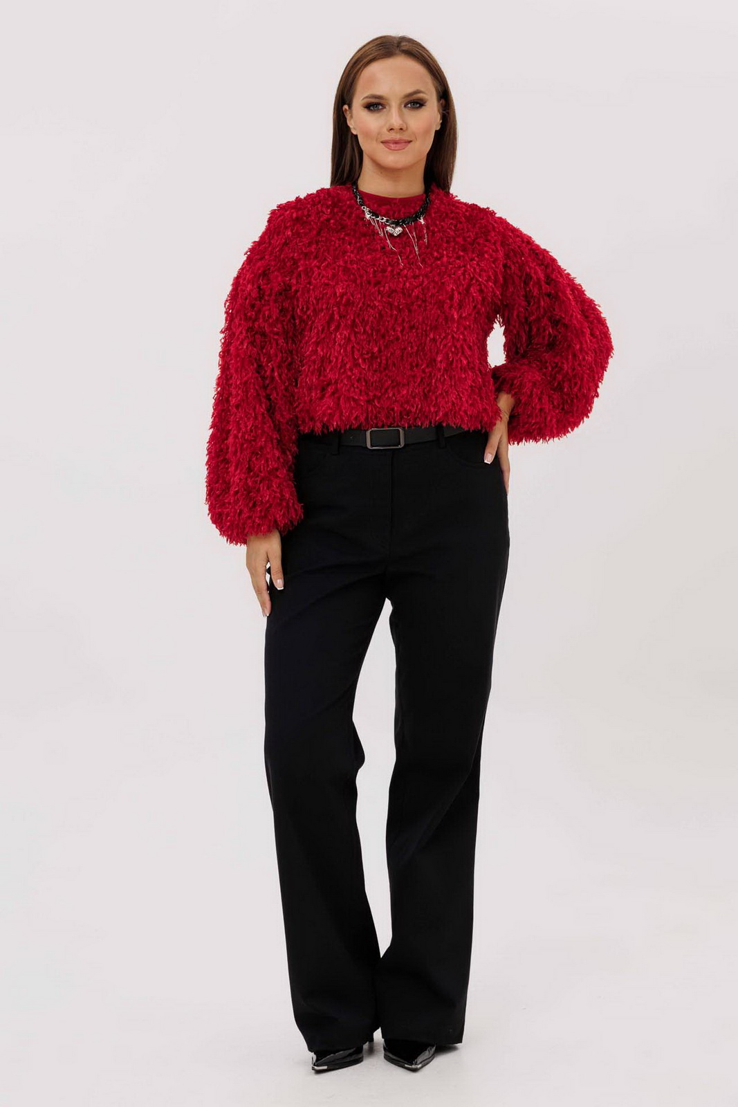 Описание: Джемпер женский свободного силуэта из трикотажной ткани “травка”. Рукав широкий, со спущенным плечом, по окату заложенные складки, понизу складки и трикотажный манжет. Воротник-стойка на трикотажной бейке. Джемпер на трикотажной подкладке.