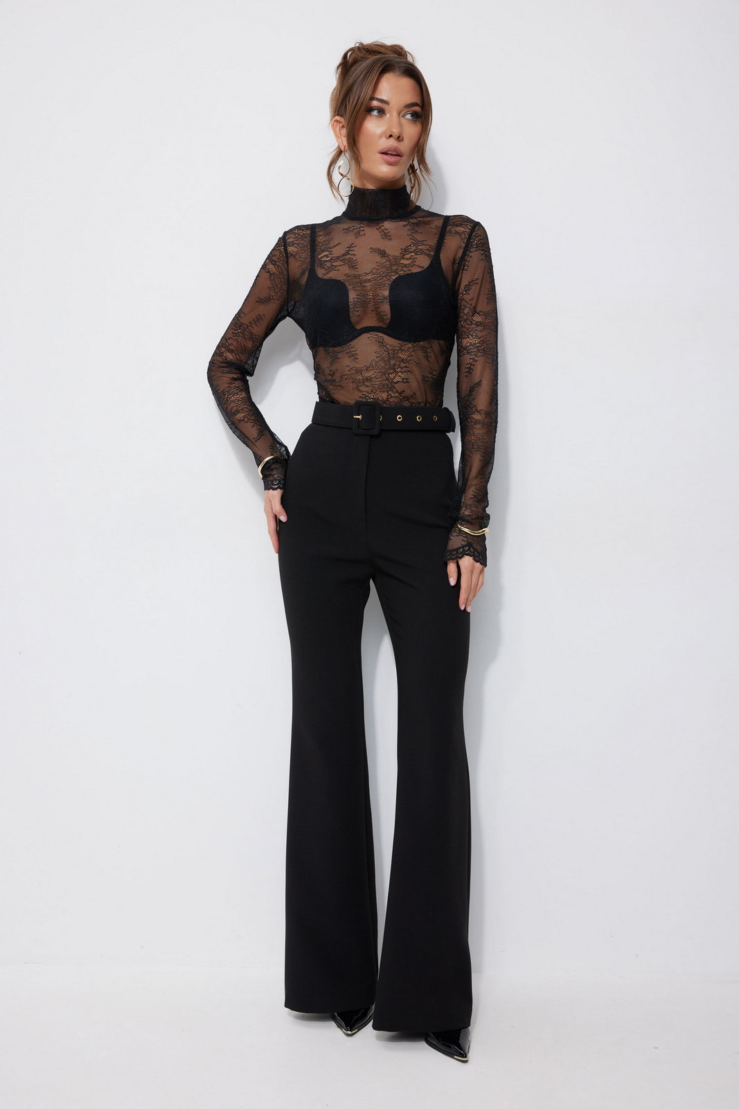 Описание: Блузка полуприлегающего силуэта из кружева. Горловина –стойка, на спинке застежка на петли и пуговицы и фигурный вырез. Рукав втачной. На спинке талиевые вытачки. Обращаем ваше внимание, что фурнитура может отличаться от фото.
