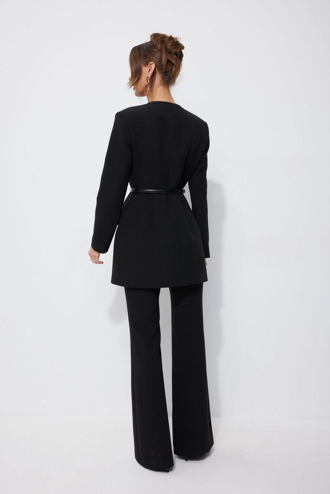 Описание: Платье-жакет из плотной поливискозы, длина мини. Платье-жакет приталенного силуэта, с расширенным плечевым поясом и расширением по низу. С двубортной застежкой по переду на пуговицы. По переду отрезные бочки и талиевые вытачки. По спинке отрезные бочки, талиевые вытачки, средний шов. Горловина овальной формы. По переду ниже линии талии карманы с клапаном, вход оформлен в рамку. Карманы расположены под наклоном. Платье на подкладке. Рукав втачной, длинный. Платье дополняется готовым съемным поясом. Обращаем Ваше внимание, что фурнитура может незначительно отличаться от фото. Данное платье-жакет можно носить, как самостоятельное изделие либо в комплекте с юбками и брюками.