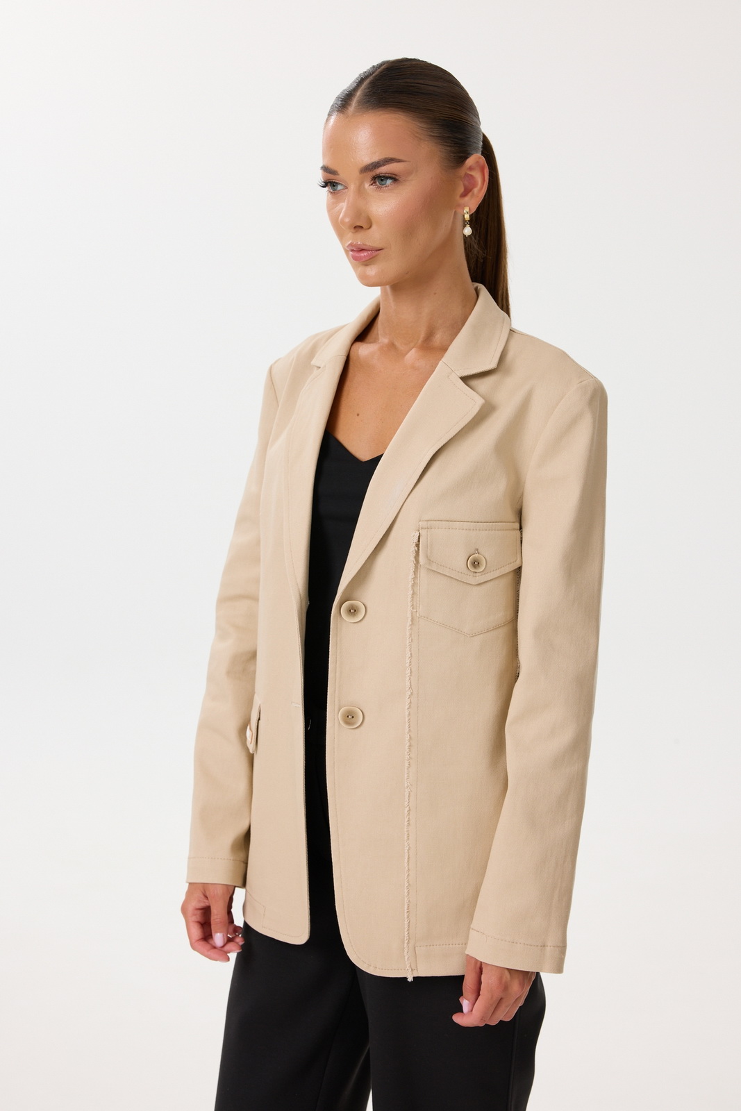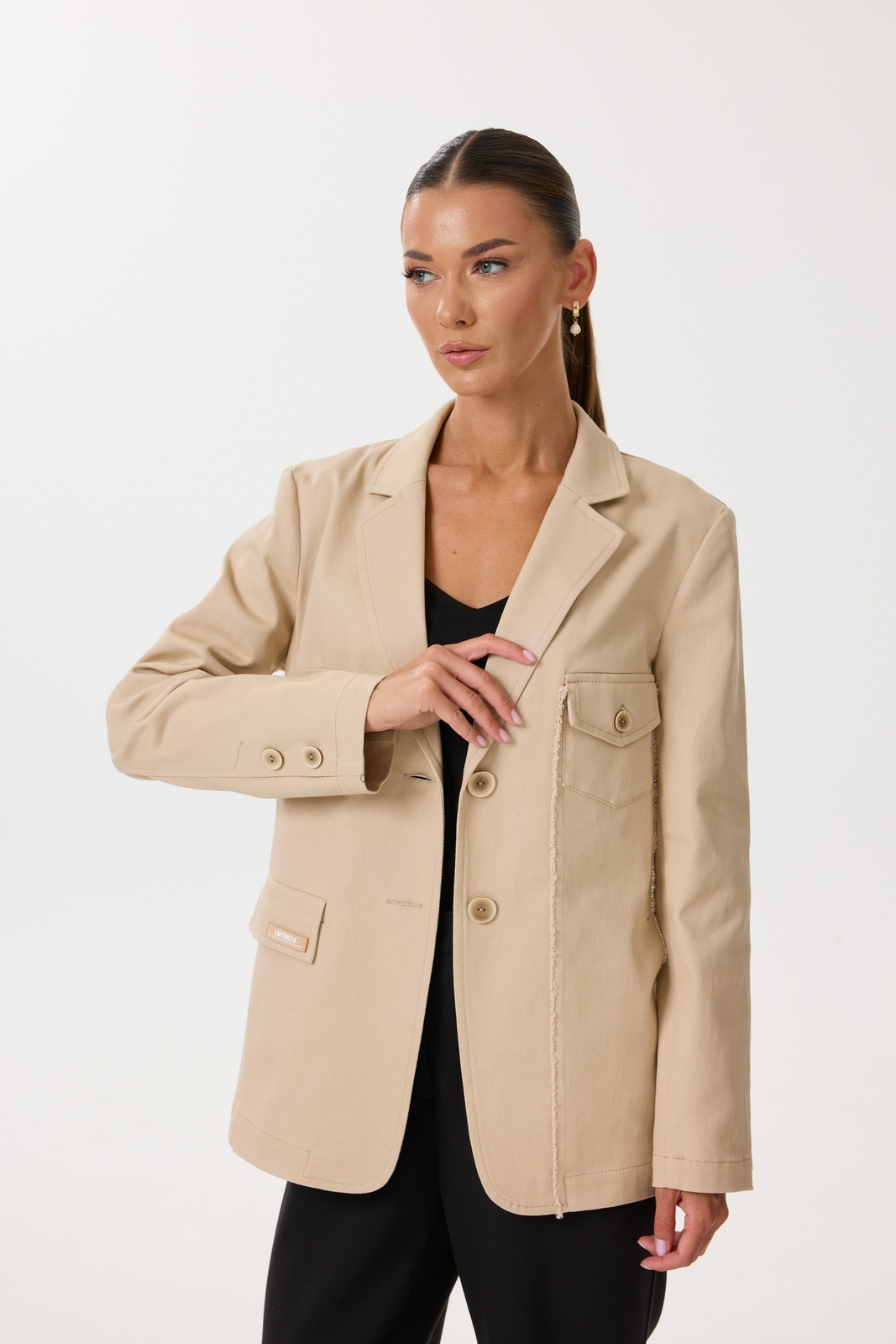 Описание: Жакет женский прямого силуэта с центральной бортовой застежкой на петли и пуговицы. По переду обработаны нагрудные вытачки, рельефы, справа прорезной карман с клапаном и листочкой (клапан декорирован нашивкой). Слева расположена настрочная «вытрепанная» деталь с накладным карманом и клапаном, застегивающимся на петлю и пуговицу. Спинка с «вытрепанной» кокеткой, на которой расположена декоративная нашивка. Нижняя часть спинки с отстрочными «вытрепанными» рельефами. Рукав длинный 2-х шовный отстрочной, с имитацией шлицы, декорированной пуговицами. Воротник пиджачного типа с отрезной стойкой. Декоративные элементы и фурнитура могут отличаться от заявленных на фото. Цвет материала может отличаться по тону в зависимости от настроек вашего монитора!
