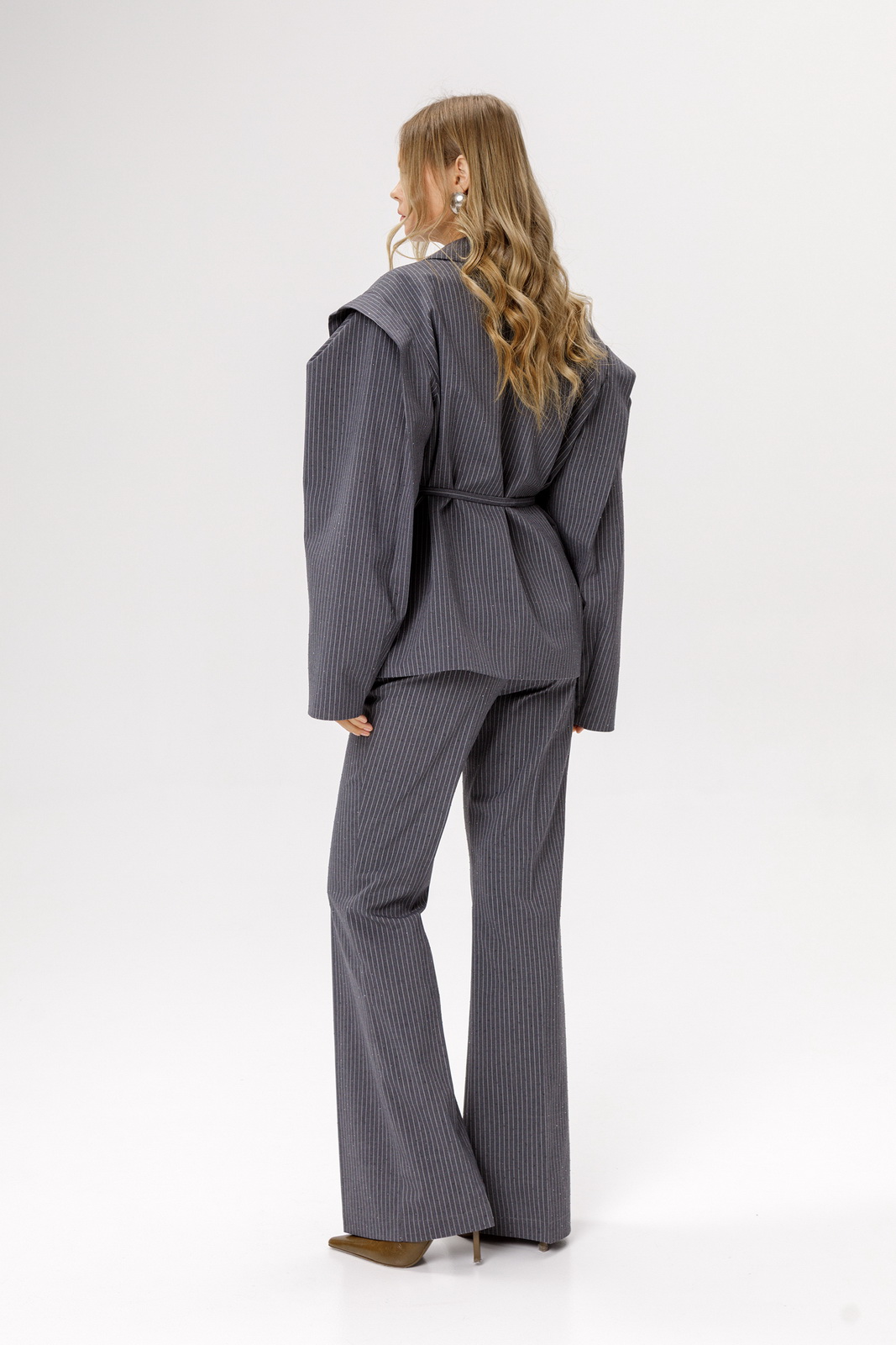 Описание: Оверсайз жакет из костюмной ткани в тонкую полоску со стразами(приобрести брюки с фото можно по арт. 6517).