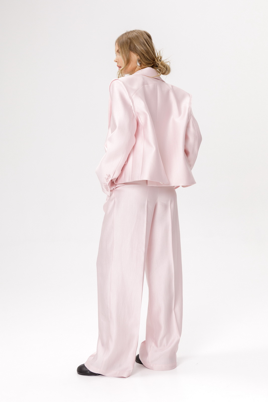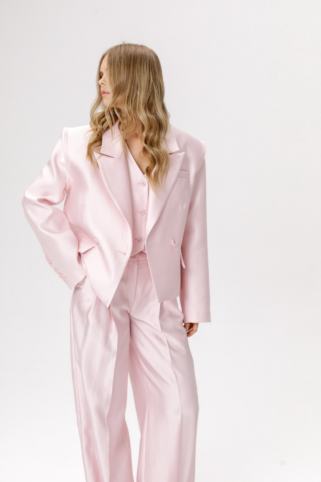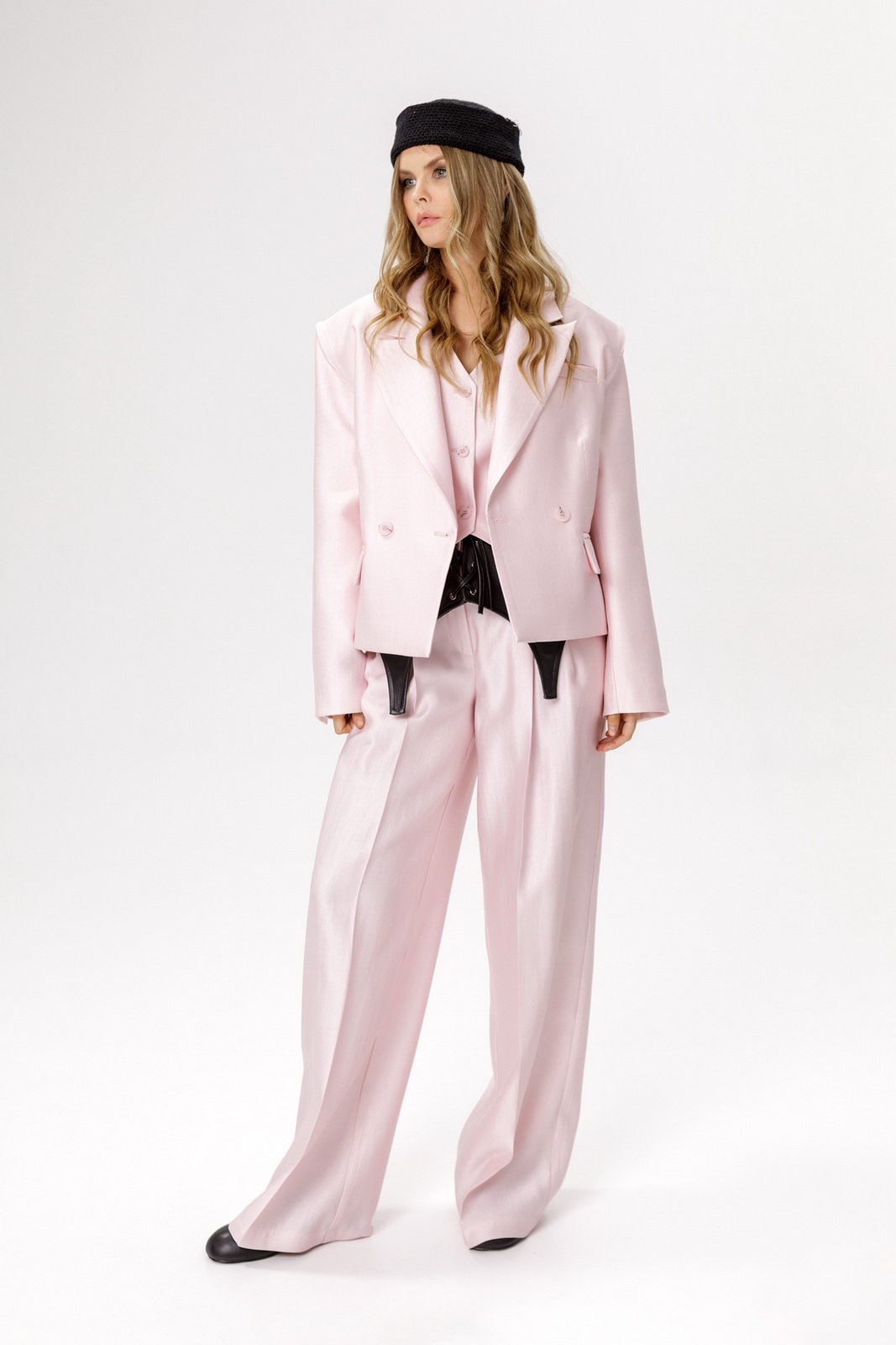 Описание: Укороченный оверсайз жакета с необработанными проймами(приобрести жилет с фото можно по арт. 6660, приобрести брюки с фото можно по арт. 6661,приобрести баску с фото можно по арт. 6551).