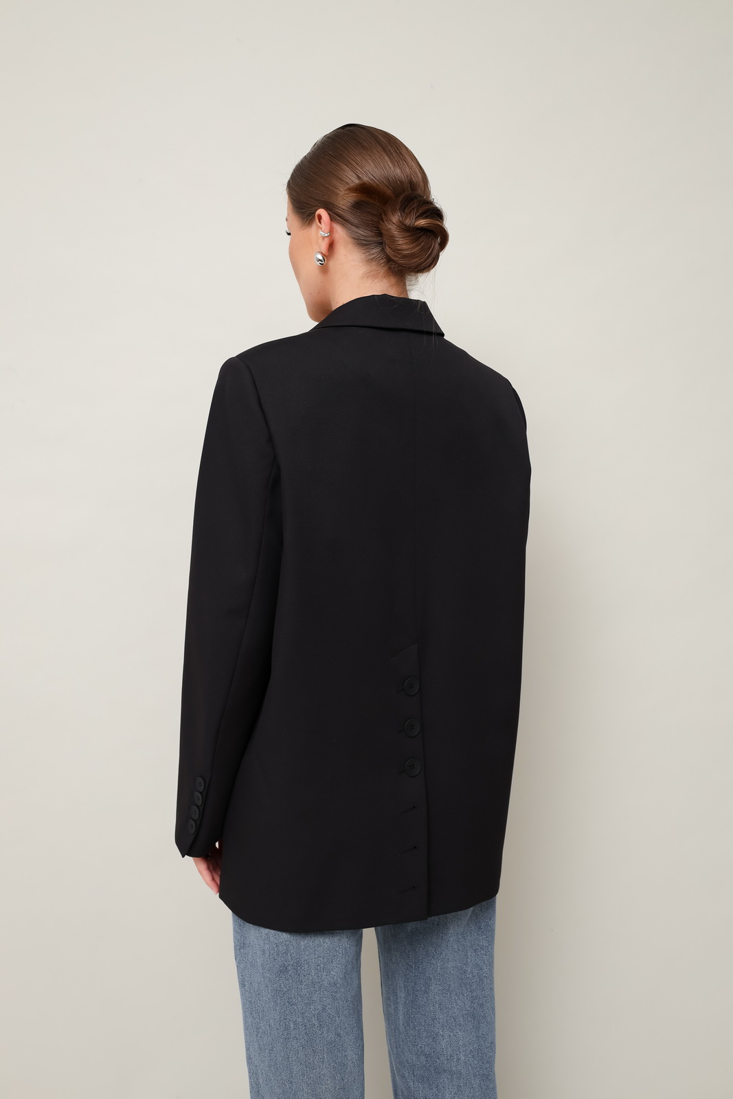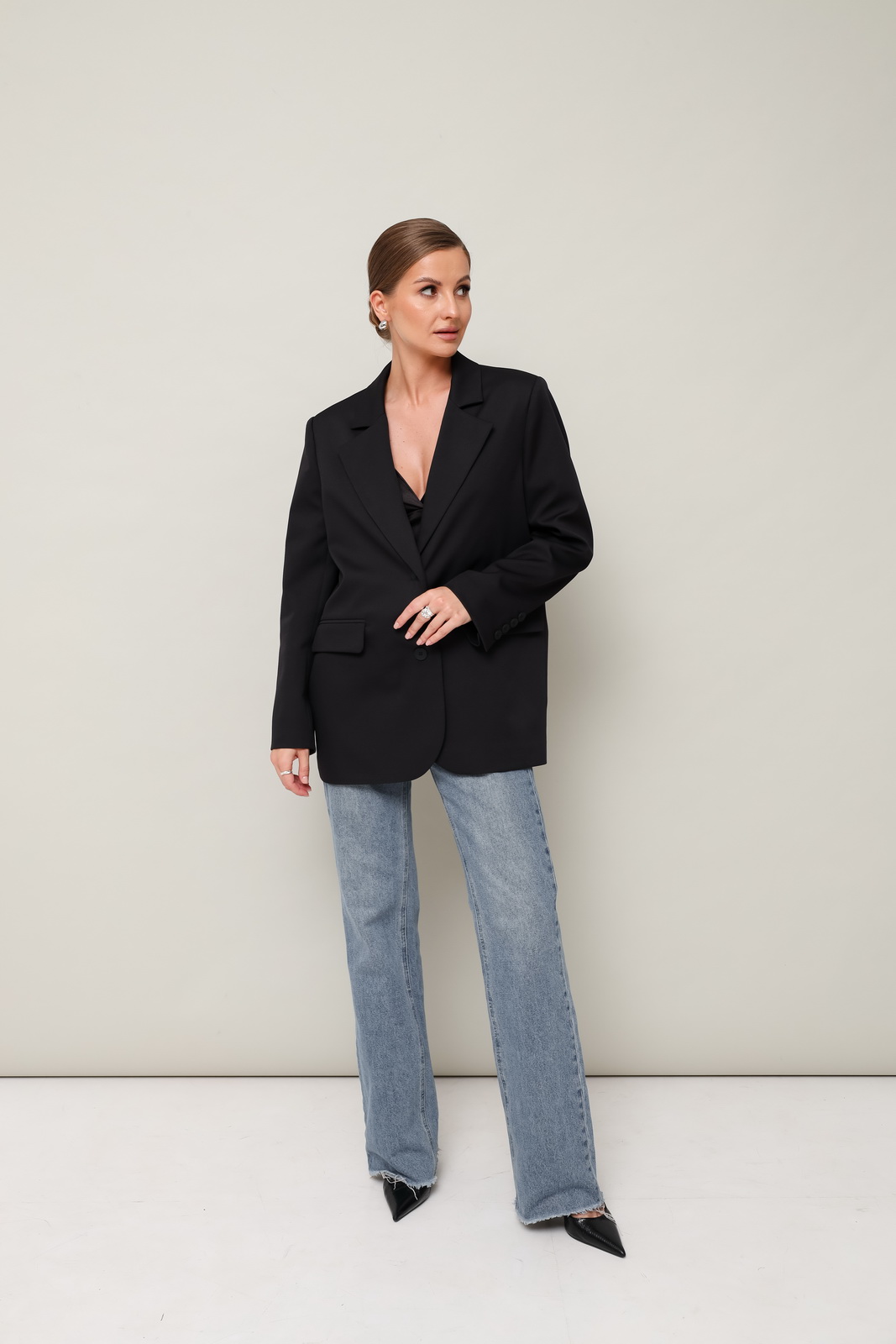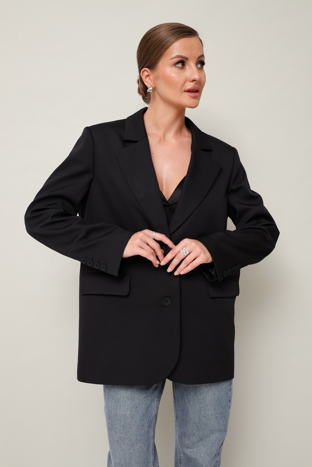 Описание: Жакет актуального прямого кроя, выполнен из костюмной ткани. Воротник пиджачного типа с отложными лацканами, край борта скругленный по низу жакета. Спереди обработаны прорезные карманы в рамку с клапанами. Рукава втачные двухшовные со шлицей и пуговицами. Спинка со средним швом, переходящим в высокую шлицу с застежкой на петли и пуговицы. Жакет на подкладке.