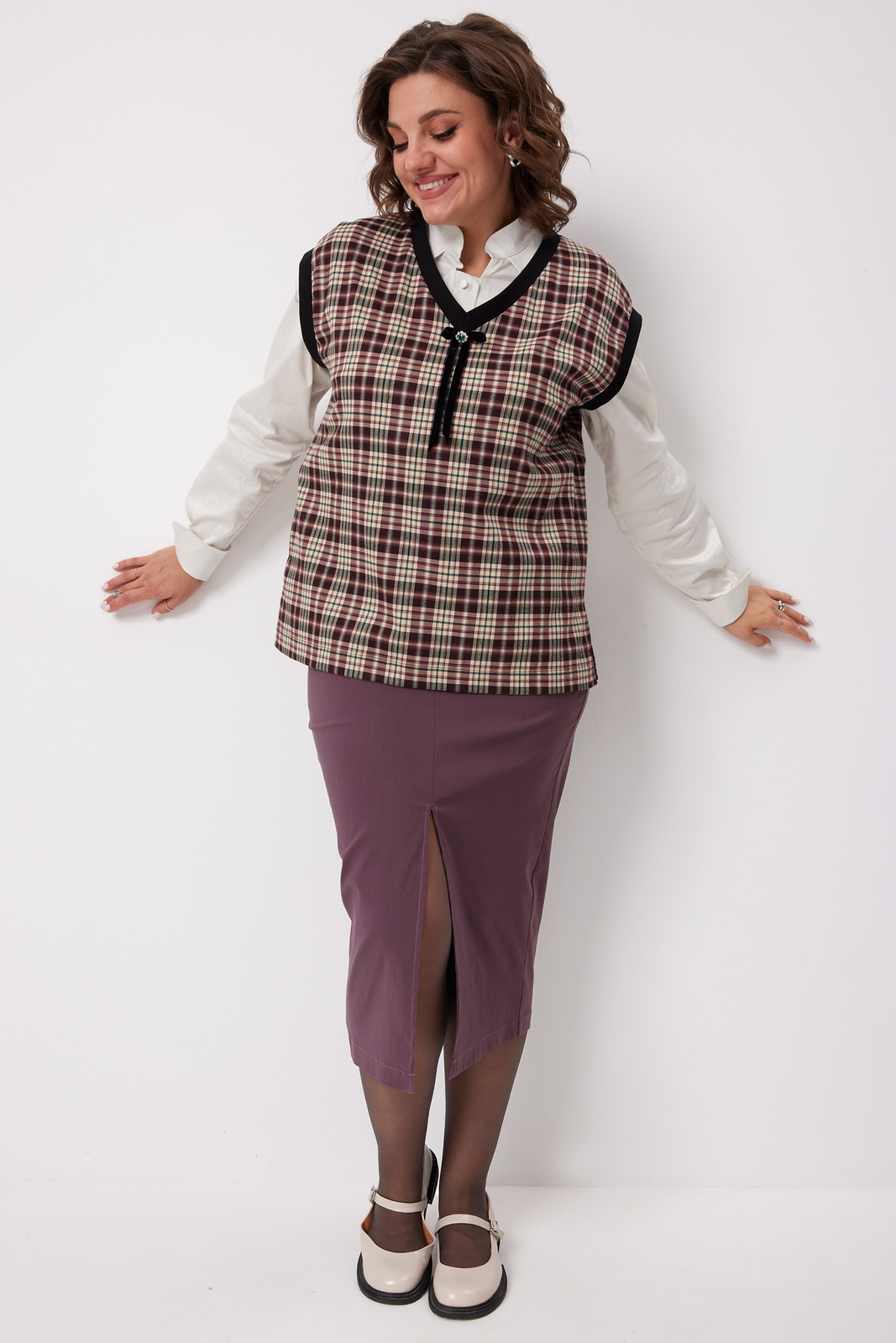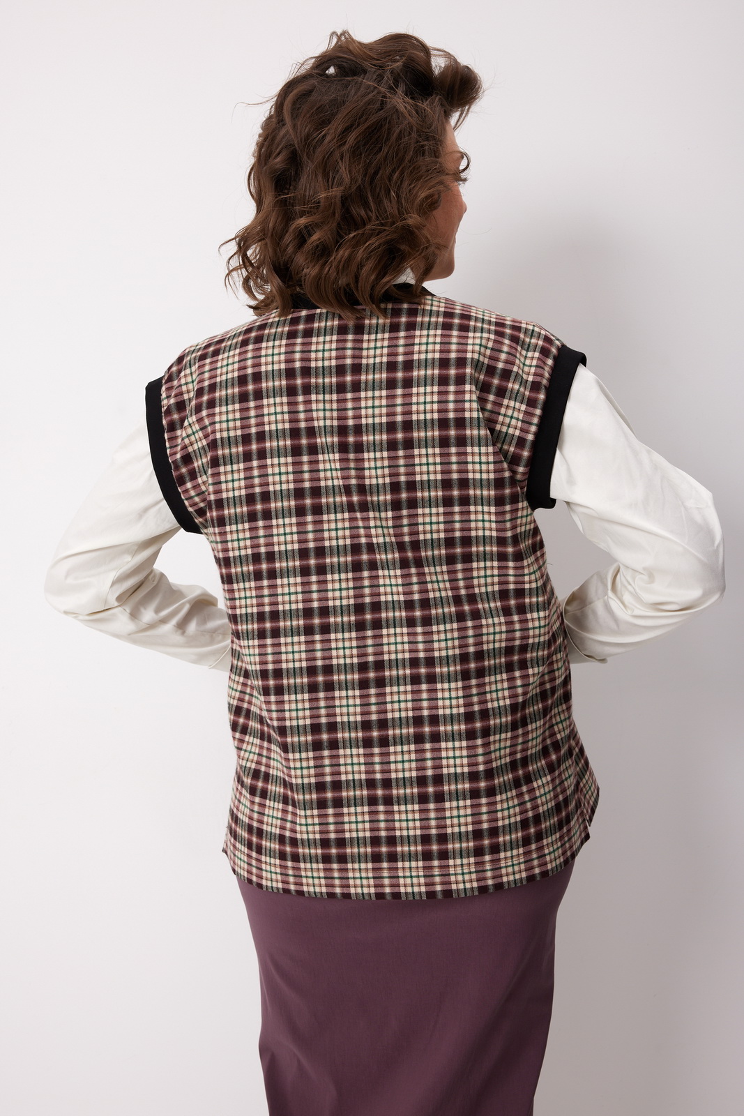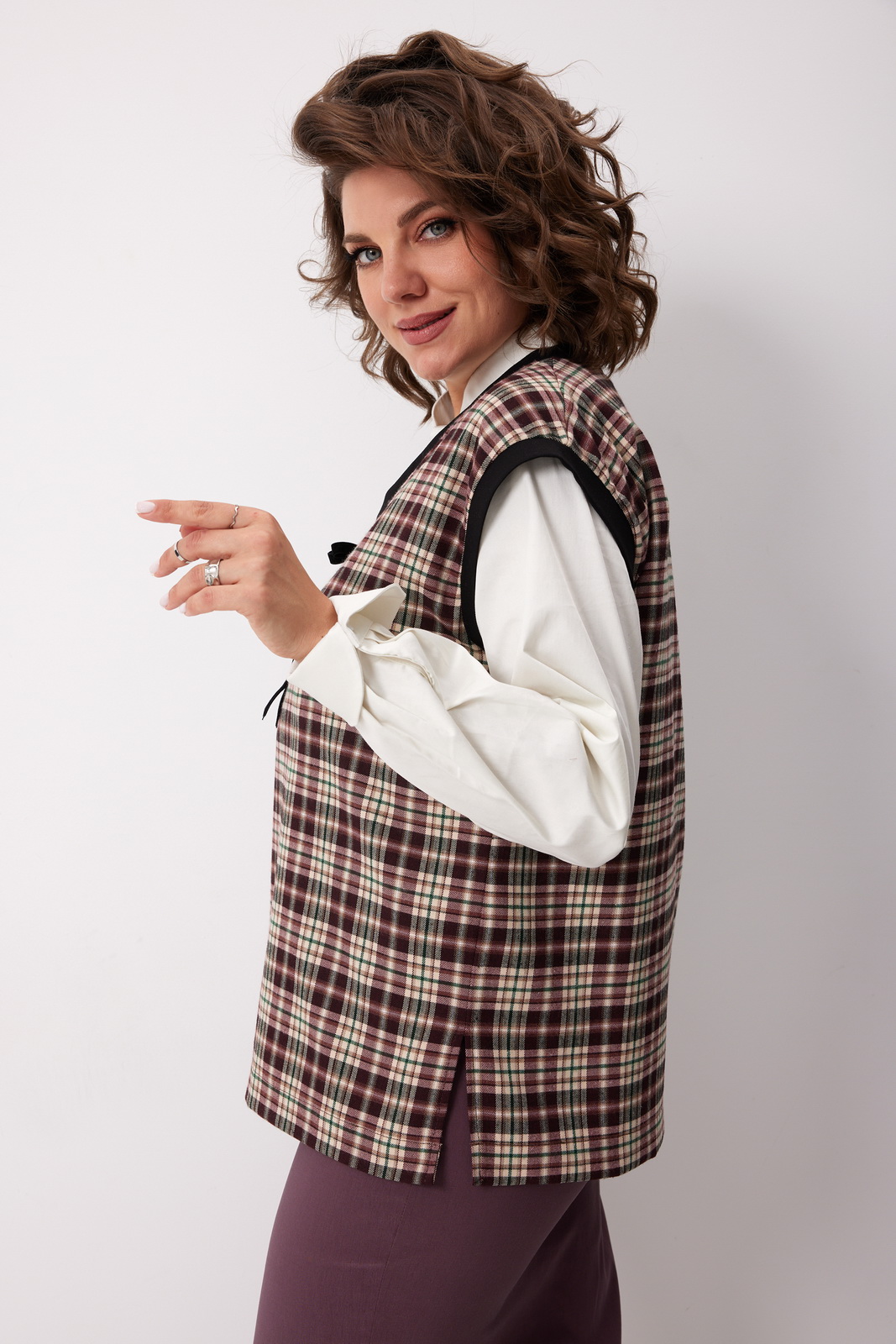 Описание: Жилет – это стильный элемент женской одежды, который позволяет создавать многослойные образы в любое время года. Предлагаем Вам стильный женский жилет, который станет незаменимой вещью в Вашем гардеробе. Мягкая костюмная ткань дарит ощущение комфорта на протяжении всего дня, а актуальный принт в клетку добавляет модели элегантность и изысканность. V-образный вырез красиво подчёркивает линию шеи и декольте. Жилет прекрасно сочетается как с блузами и рубашками для деловых встреч, так и с лонгсливами для более расслабленных образов.