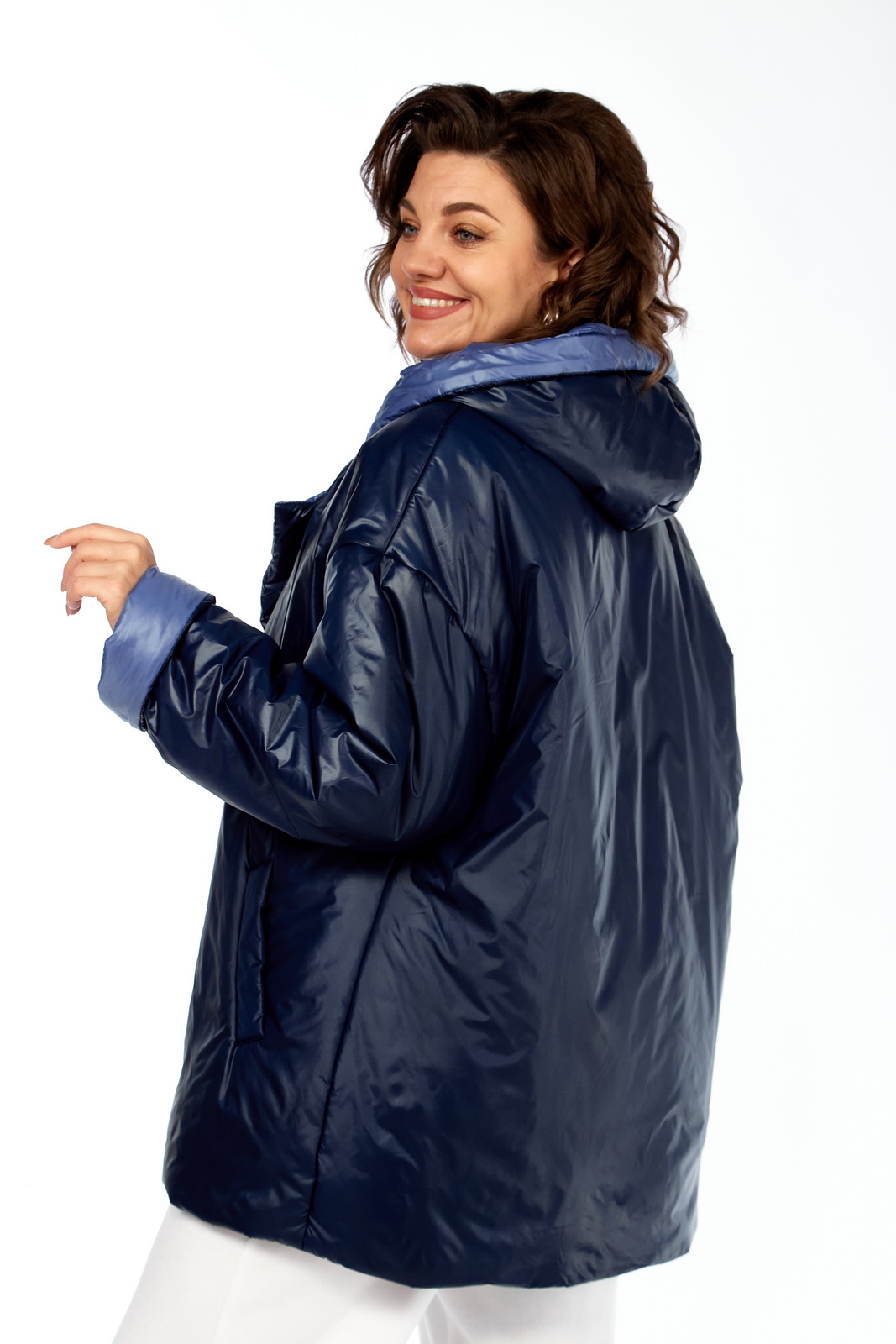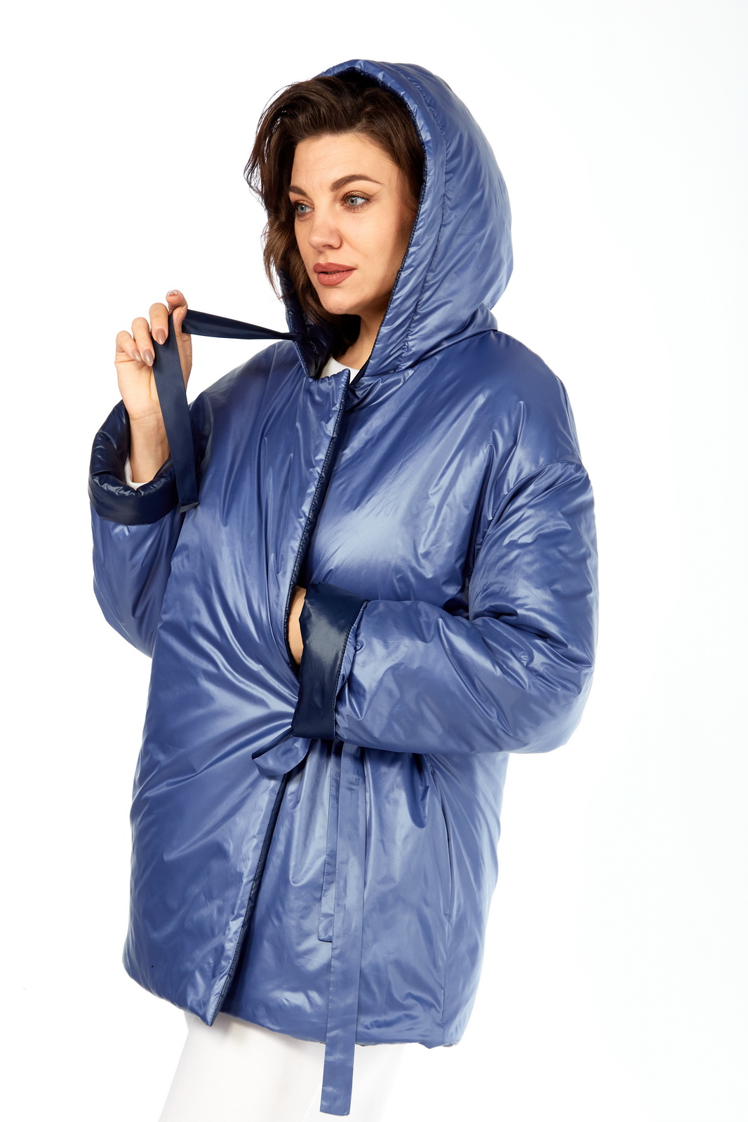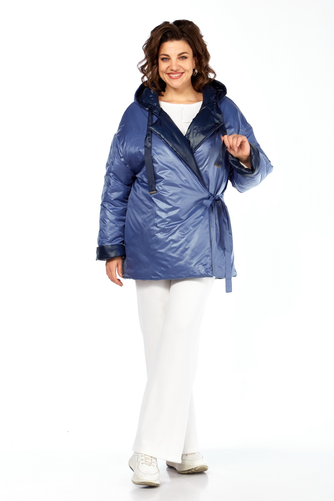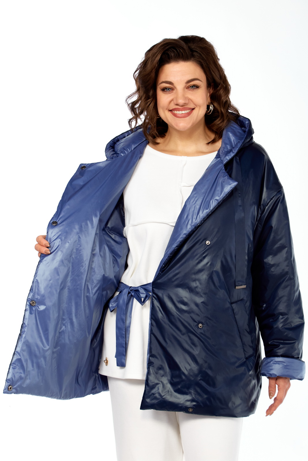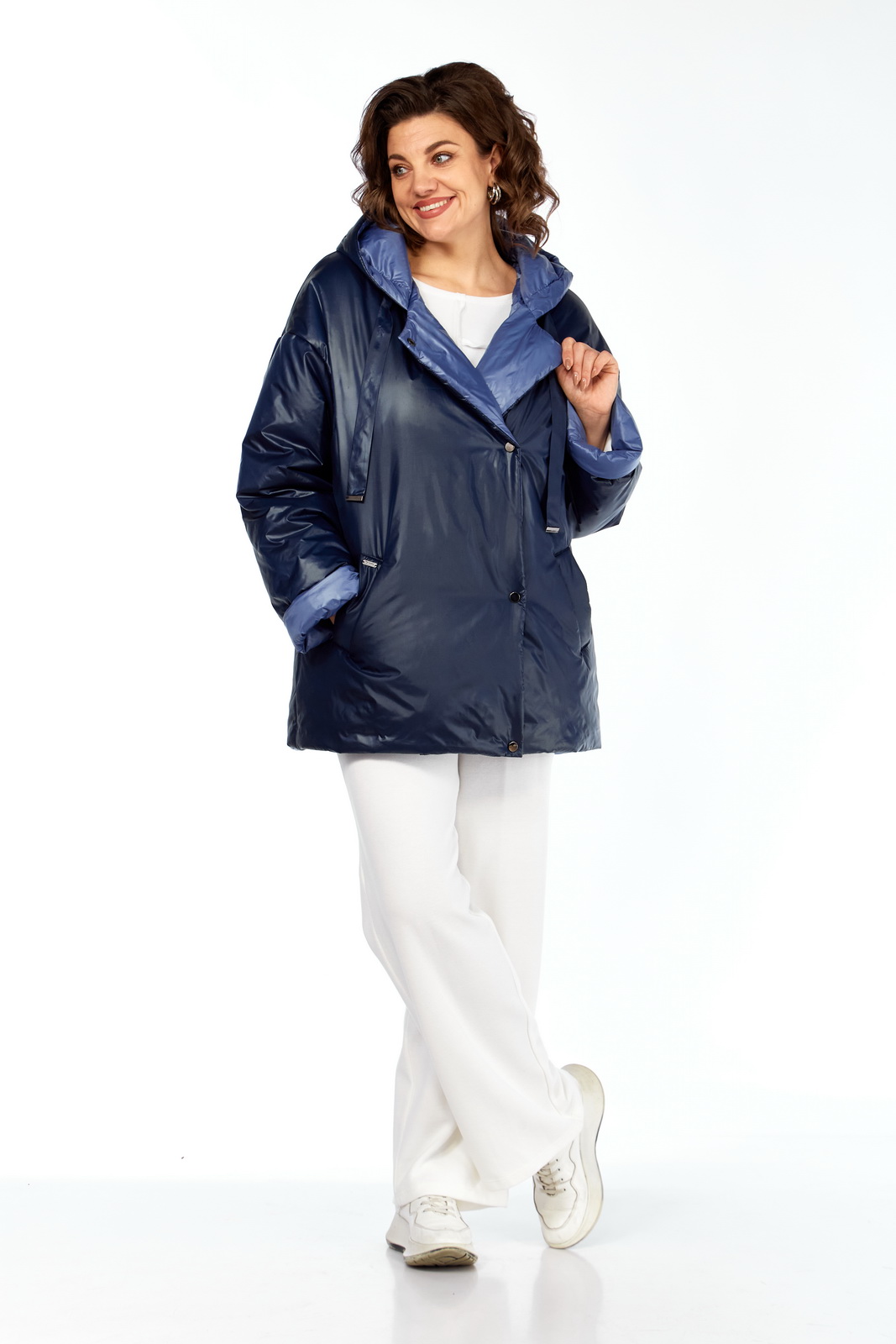 Описание: Куртка женская двухсторонняя с центральной бортовой застежкой на кнопки. Спинка простая. Перед с боковыми карманами с одной стороны “с листочкой”, а внутренняя сторона с карманами в боковых швах. Рукав втачной одношовный со спущенной линией плеча. Воротник-капюшон с кулисой. Есть пояс на резинке с застежкой на пряжку. Куртка утепленная. Температурный режим до – 10 градусов. Фурнитура может отличаться от заявленной на фото.