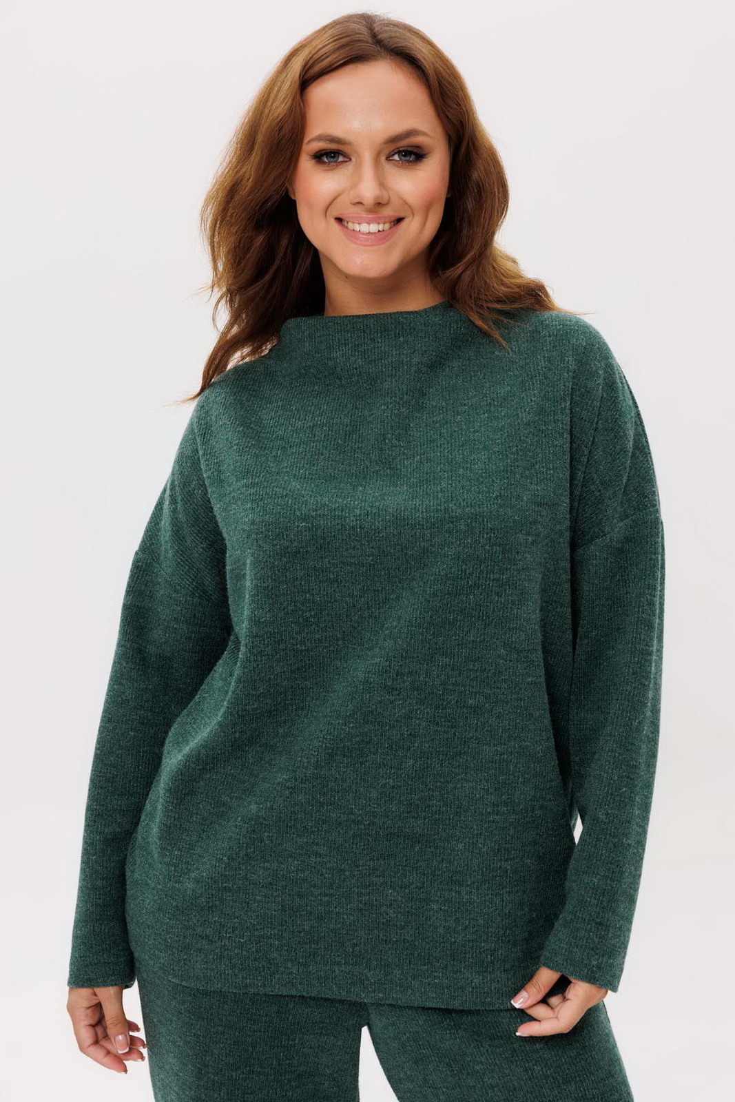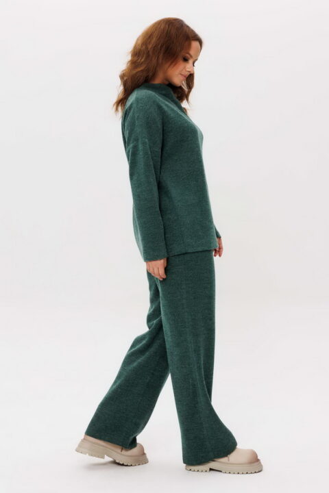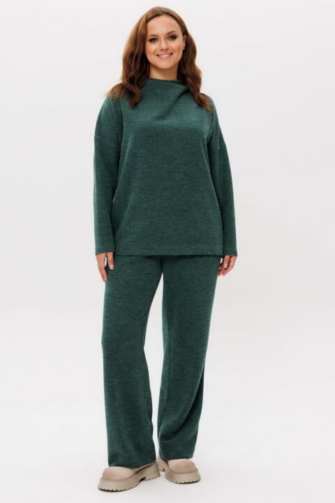 Описание: Костюм трикотажный женский состоит из джемпера и юбки нан подкладке. Джемпер прямого силуэта со спущенным втачным рукавом. Горловина – цельнокроенная стойка. Брюки на резинке.