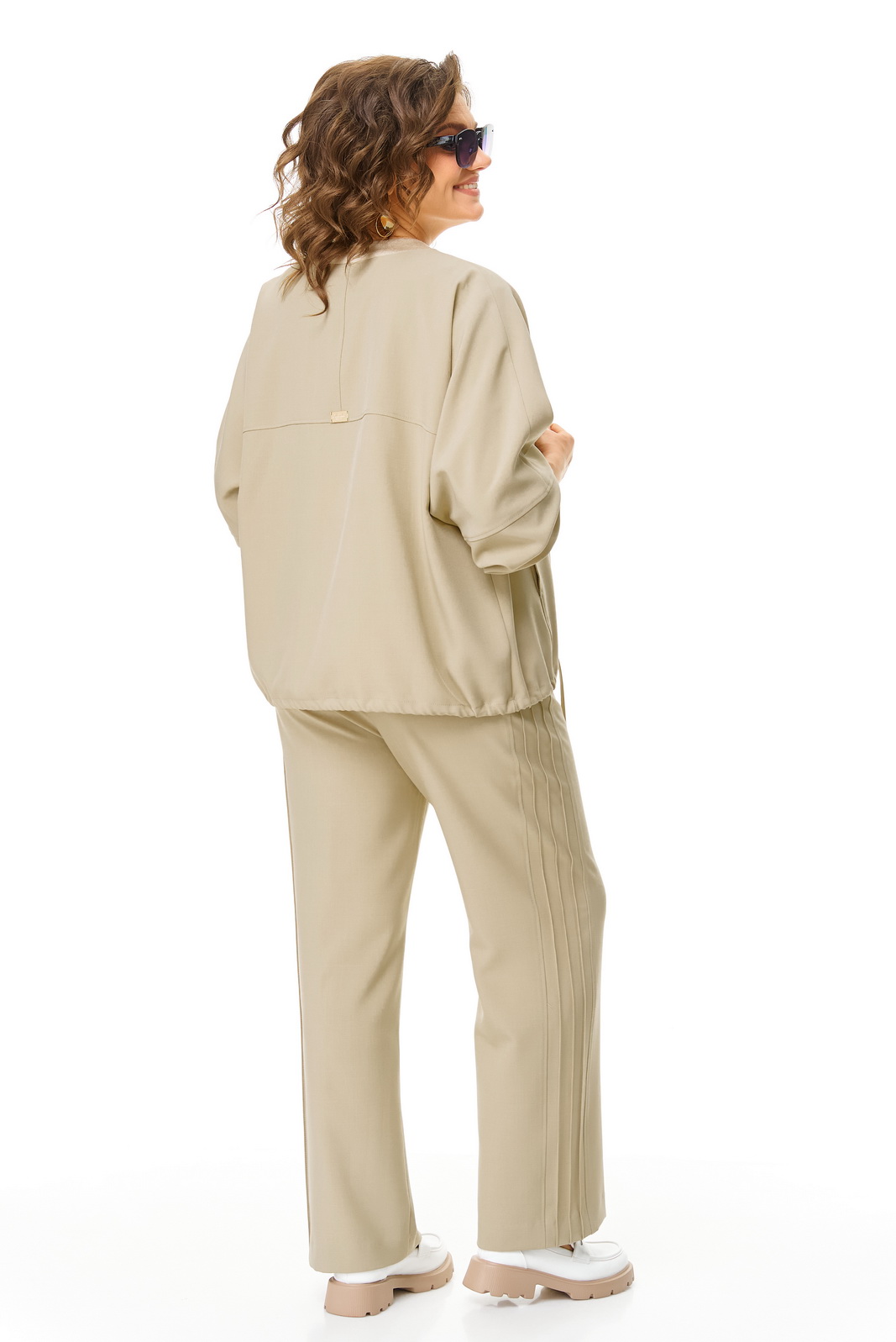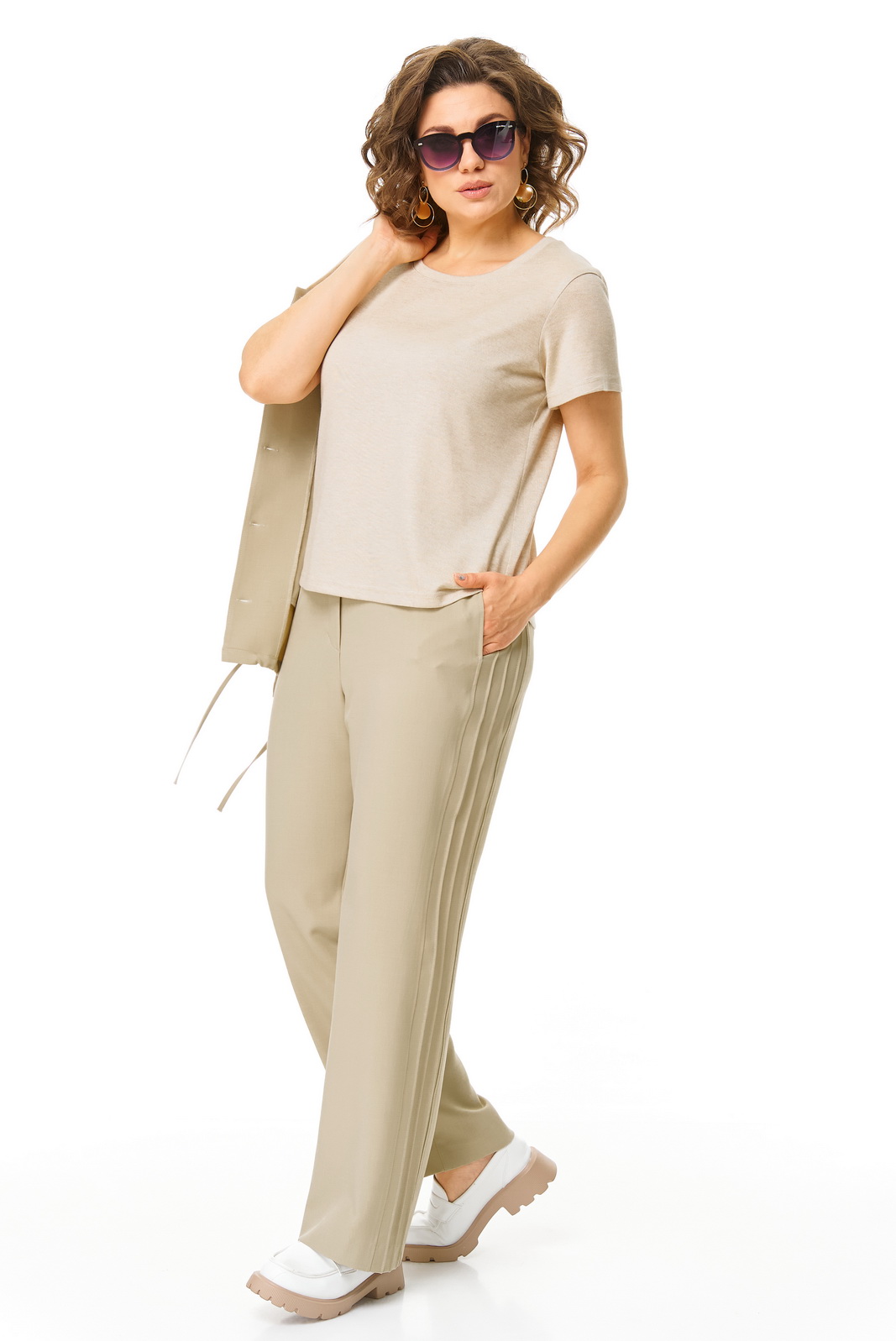 Комплект выполнен из костюмной ткани средней плотности. Топ выполнен из трикотажного полотна.