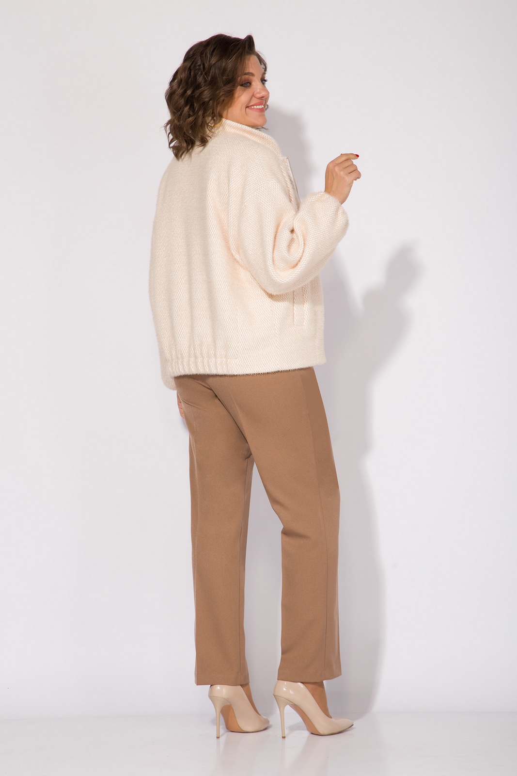 Классические женские брюки, со средней посадкой, прямого покроя от бедра. Застежка – брючная тесьма-молния с обработанным гульфиком. Карманы боковые. Пояс притачной, в боковых участках вставлена резинка на свободу. По переду заутюжены канты. Спинка с Талиевыми выточками. Подгибка брюк –– 4 см.
