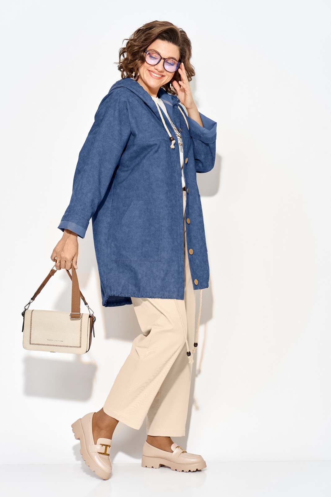 Описание: Женская джинсовая парка-ветровка, выполнена из 100% хлопка с эффектом водоотталкивающей пропитки. Удлиненная джинсовка силуэта оверсайз очень практична и удобна, смотрится необычно и элегантно. Модель с объемным капюшоном является очень популярной в предстоящем сезоне. Застежка центральная на петли и пуговицы. Рукав длинный на спущенном плечевом поясе обеспечивает идеальную посадку по фигуре. По полочке расположена кокетка и накладные карманы с отделочными строчками. Спинка с центральным швом, переходящим в разрез. Низ изделия фигурный с утяжкой на шнуровку с наконечниками.