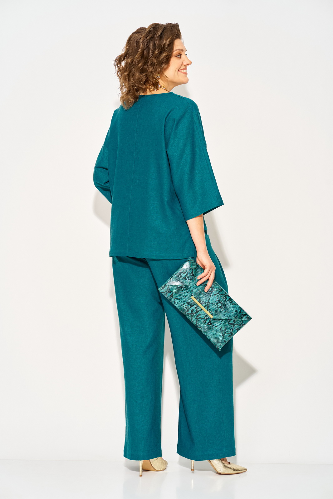 Описание: Оригинальный летний костюм, состоящий из туники и брюк. Модель выполнена из легендарного материала – лен с добавлением хлопка. Модель туники свободного силуэта с цельнокроеным рукавом длиной ¾-ти. Лиф V-образным мысом, что зрительно удлиняет силуэт и притягивает взгляды окружающих. Линия низа ассиметричной формы с декоративными планками. Особое внимание уделено свободным брюкам прямого силуэта, на притачном поясе с резинкой по кругу. Оригинальные карманы с заложенными складками создают комфорт и изящество образу.