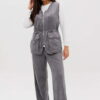 Образ, который говорит сам за себя, смелый и дерзкий, и в то же время очень комфортный. Нестандартный жилет с накладными карманами-пеналами с клапаном. Регулирующая кулиса, подчеркивающая талию. Свободный силуэт, центральная застежка на тесьму молнию, фигурная линия низа. Жилет на подкладке.