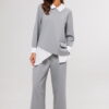 Детали: универсальный серый оттенок с белыми акцентами, который легко вписывается в капсульный гардероб.