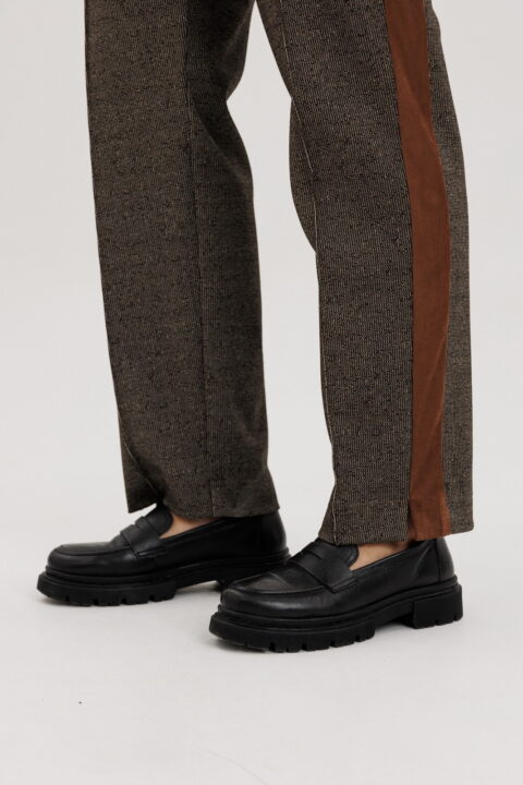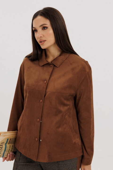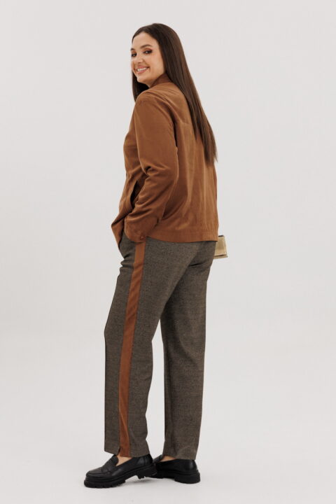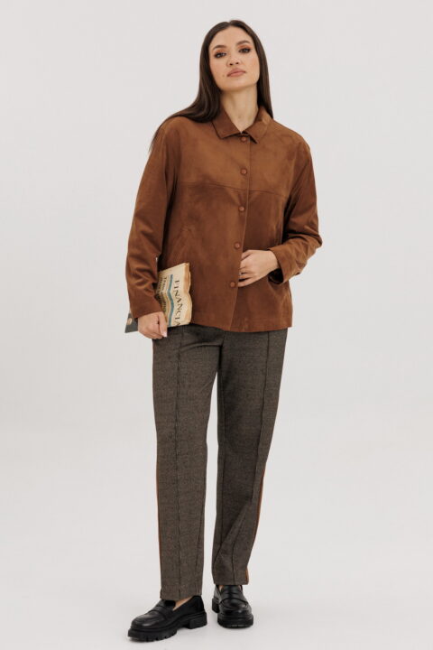 Описание: Стильный женский брючный костюм в стиле смарт-кэжуал сочетает комфорт и элегантность. Рубашка выполнена из замшевой ткани, брюки из трикотажа с декоративными замшевыми вставками. Идеальный выбор для офиса, деловых встреч и повседневных образов.