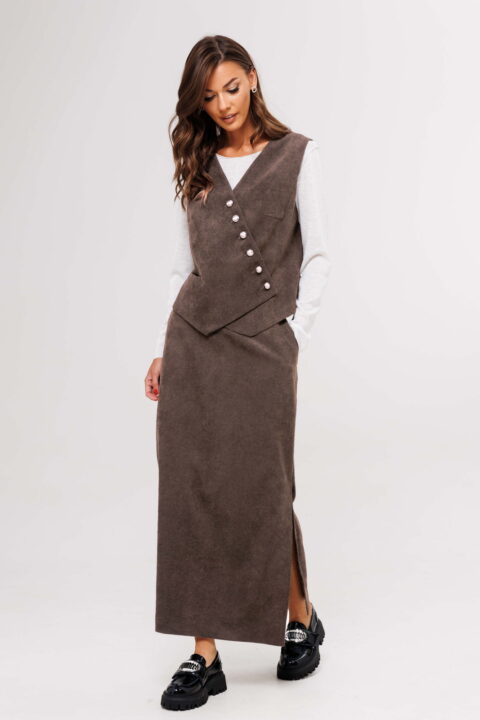 Описание: Костюм с жилетом – прекрасное решение для смелых экспериментов. Выполненный в ахроматической цветовой гамме, он позволяет дополнять себя различными аксессуарами и создавать каждый раз новые актуальные образы.