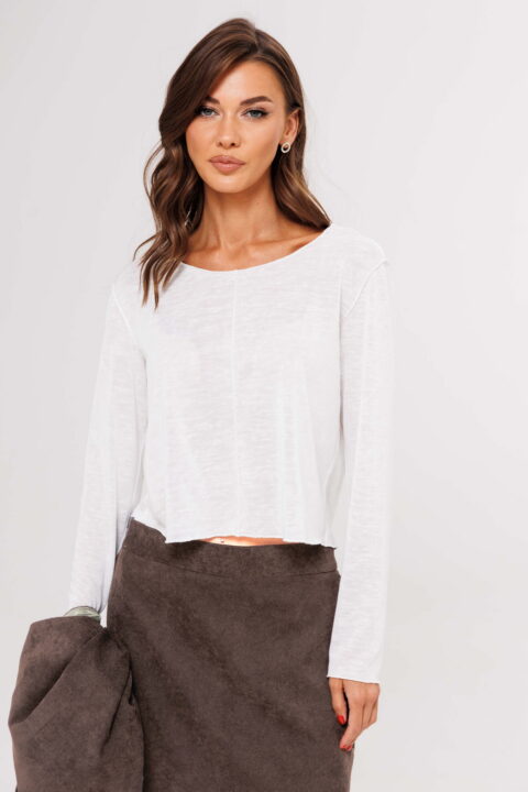 Джемпер трикотажный, с длинным рукавом, полуприлегающего силуэта.