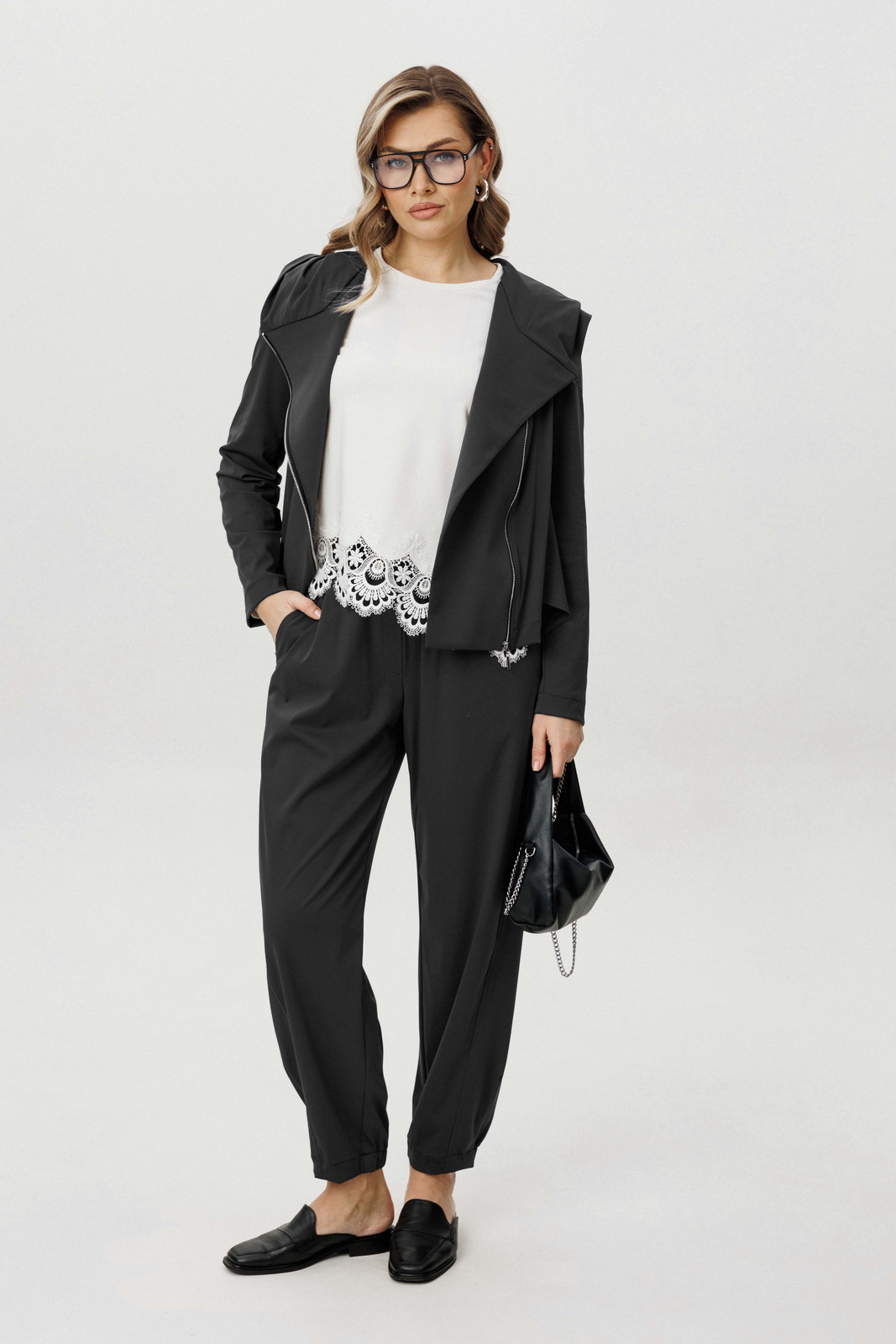 Брюки в расслабленном стиле с эластичным поясом обеспечивают комфортную посадку и свободу движений. Эффектные подрезы добавляют объём и архитектурность, делая модель визуально интересной и актуальной.
