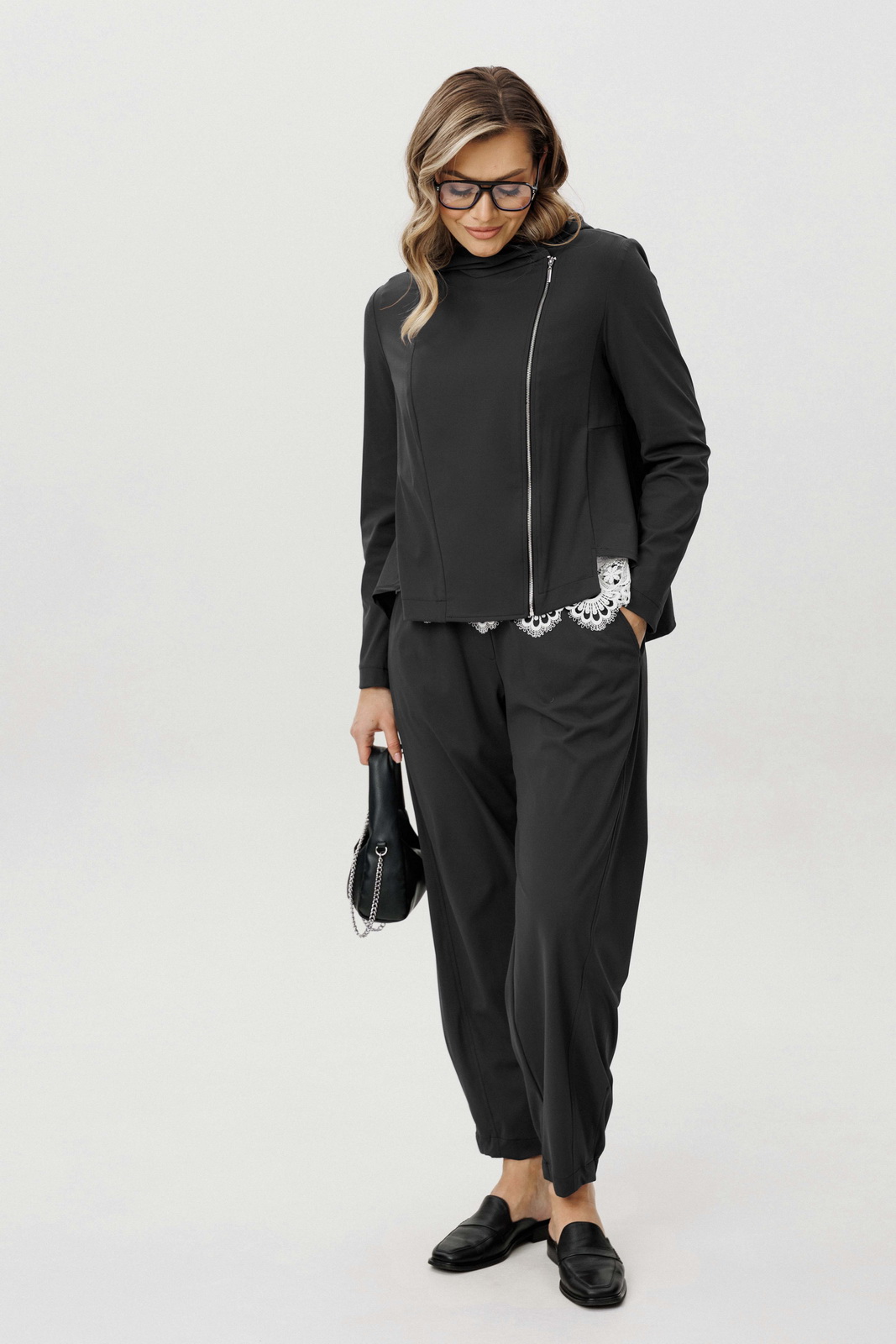 Куртка с капюшоном выполнена в минималистичной эстетике и дополнена асимметричной застёжкой на тесьму-молнию, которая создаёт динамику и подчёркивает дизайнерский характер модели. Продуманные линии кроя формируют выразительный силуэт без излишней жёсткости.