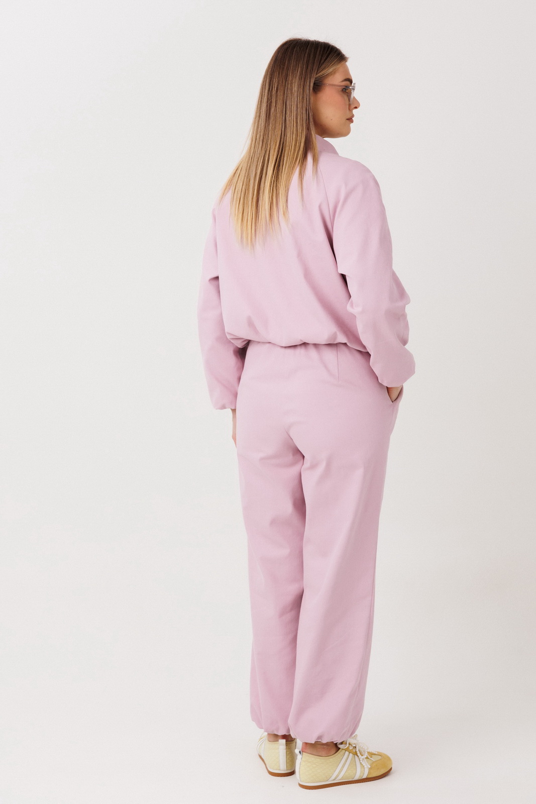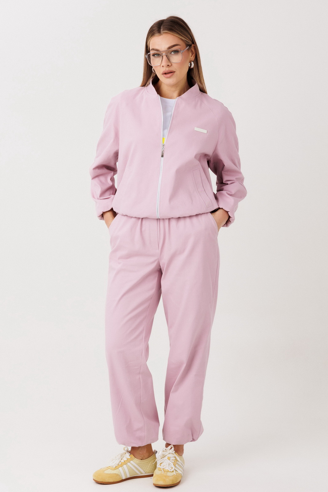 В комплект входит: Куртка-бомбер на молнии с эластичными манжетами и поясом Брюки свободного кроя с комфортной посадкой и мягкой резинкой по низу