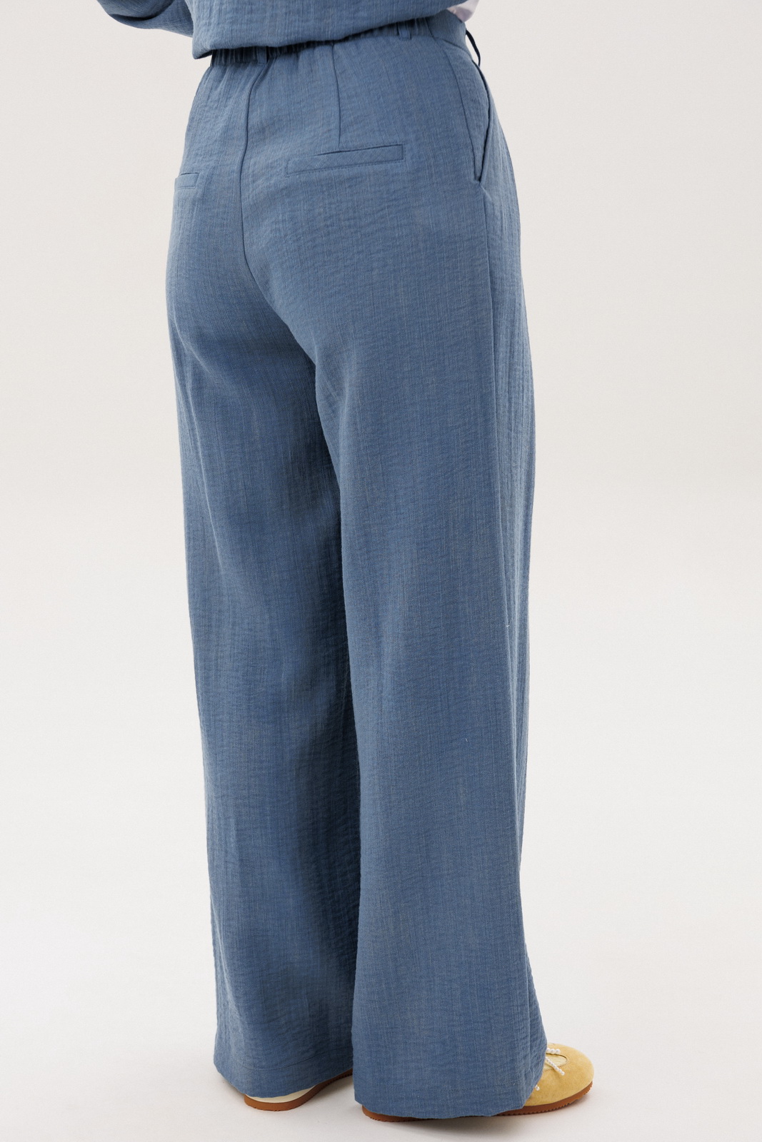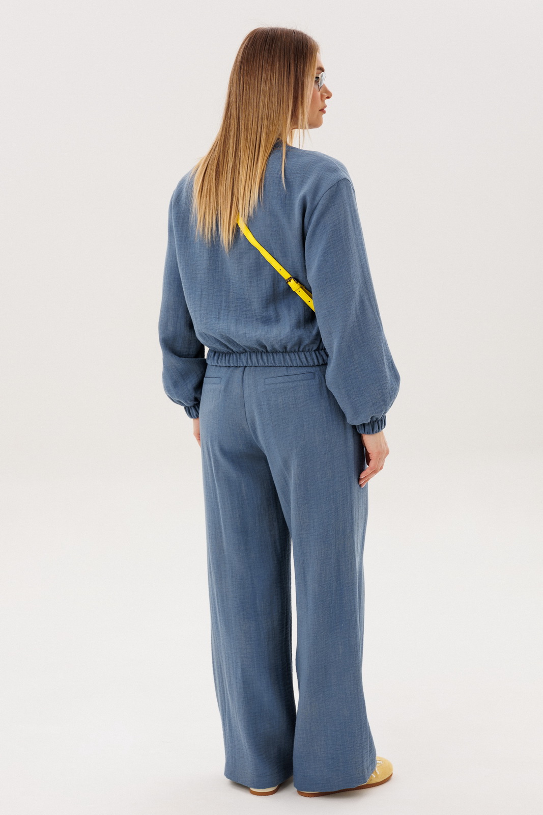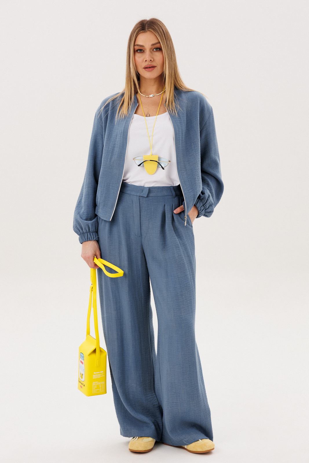 Описание: Стильный брючный комплект в благородном голубом оттенке — универсальное решение для современного гардероба. Лаконичный дизайн и свободный крой создают лёгкий, элегантный образ, который идеально подходит для повседневной жизни и городских прогулок.