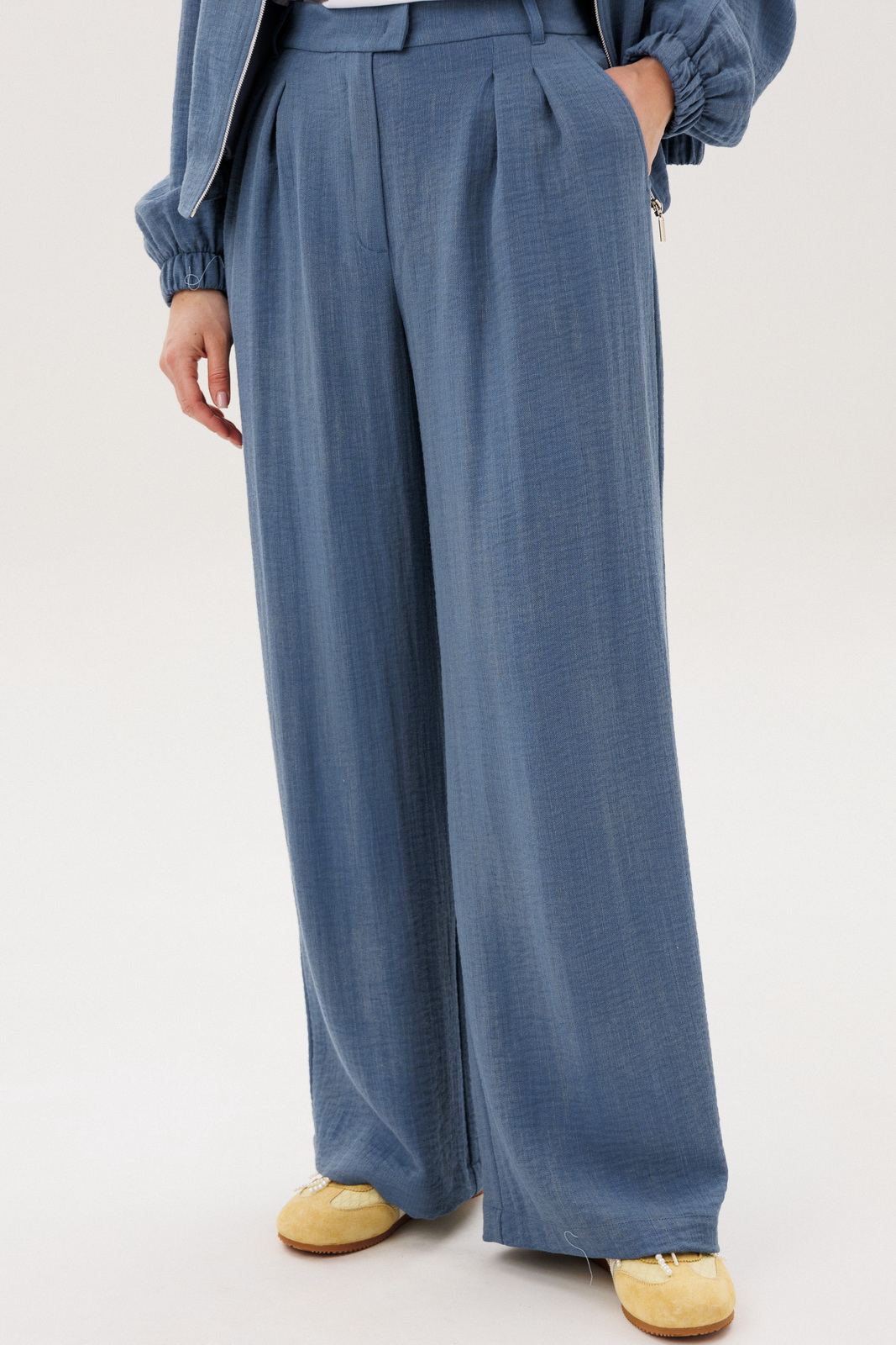 Широких брюк с высокой посадкой и аккуратными складками спереди
