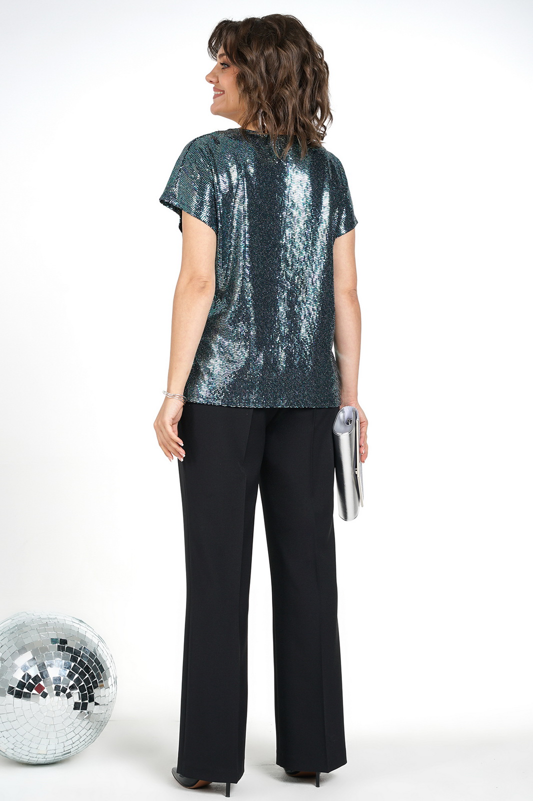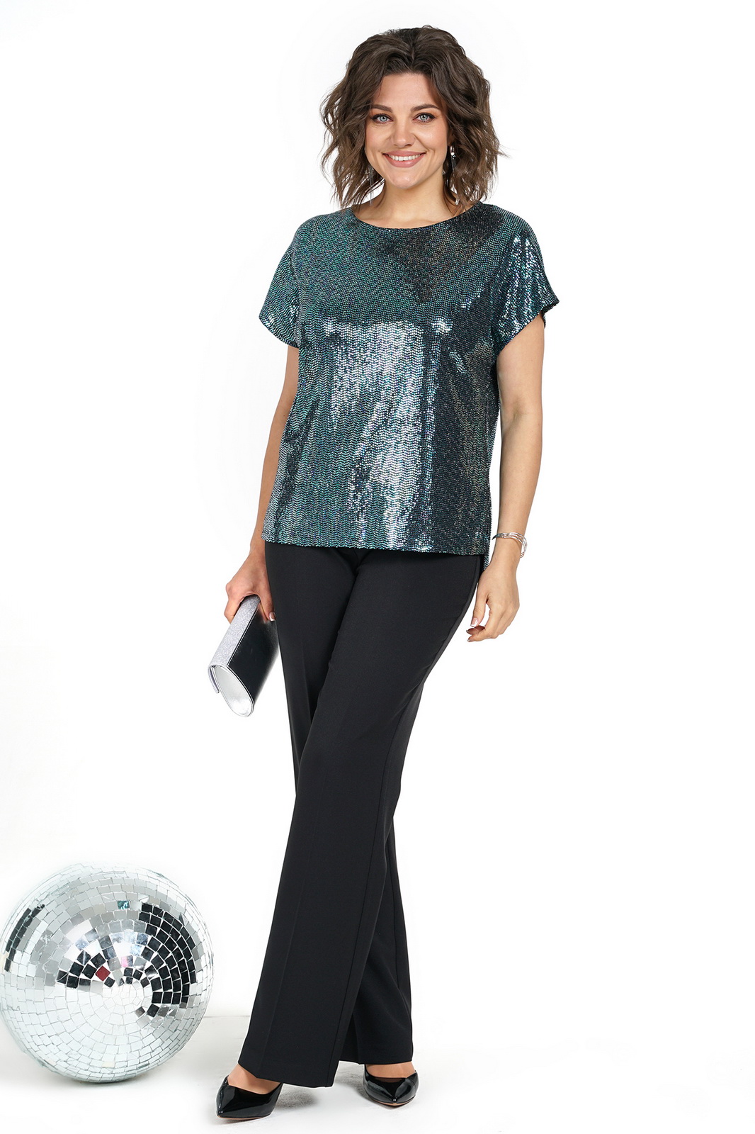 Состав ткани: Ткань Блуза трик. полт. с золотым напылением 60%П/Э, 36%нейлон, 4%спандекс Брюки платьево-костюмного ассортимента 62%П/Э, 35%вискоза, 3%эластан