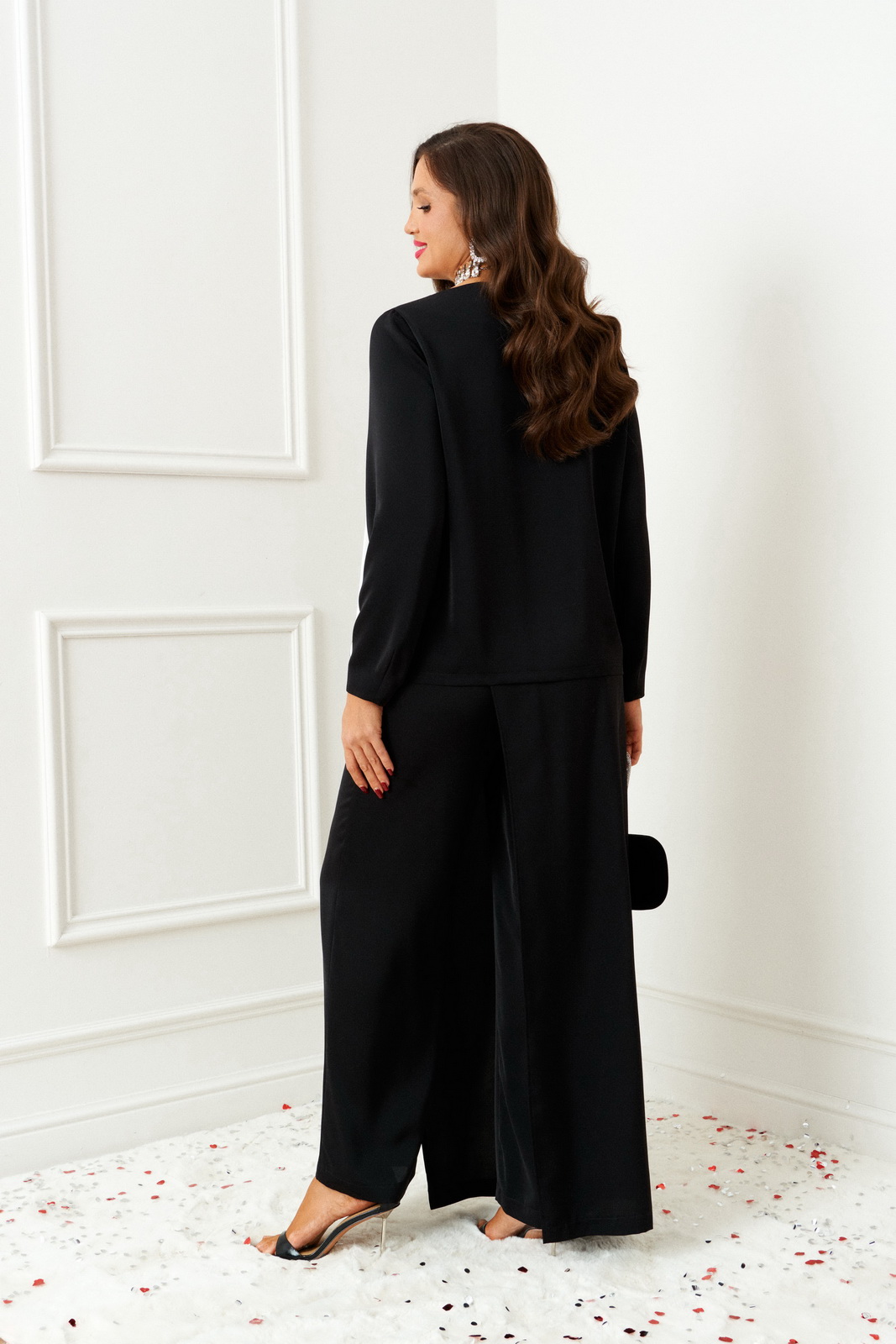 Описание: Готовимся к главной ночи года! Брючный костюм из мягкого крепа идеально подходит для торжественных выходов и не только! Оба предмета костюма можно смело комбинировать по отдельности с другими вещами Вашего гардероба.