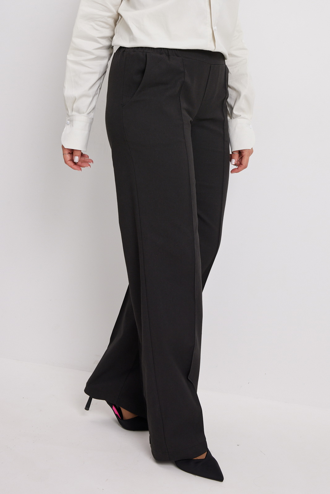 Брюки прямые с застроченными стрелками для удлинения ног. Пояс на резинке, с островком для Вашего удобства. По бокам – карманы хулиганы. Низ брюк обработан подгибкой.