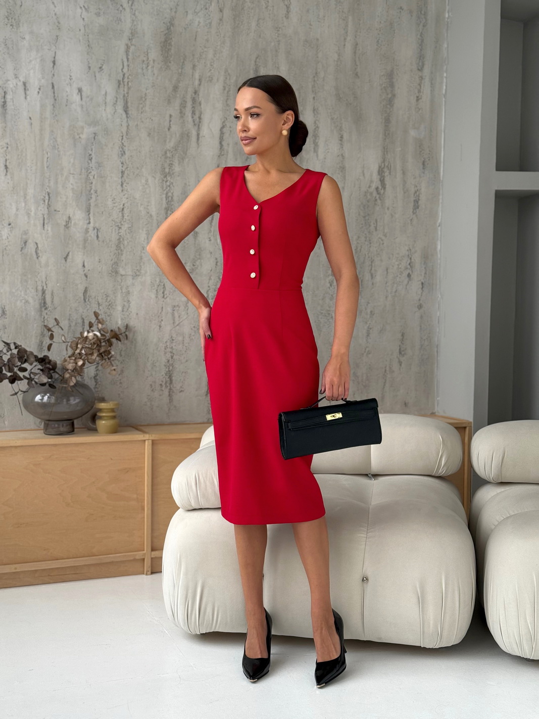 Платье полуприлегающего силуэта, длинной чуть ниже колена.