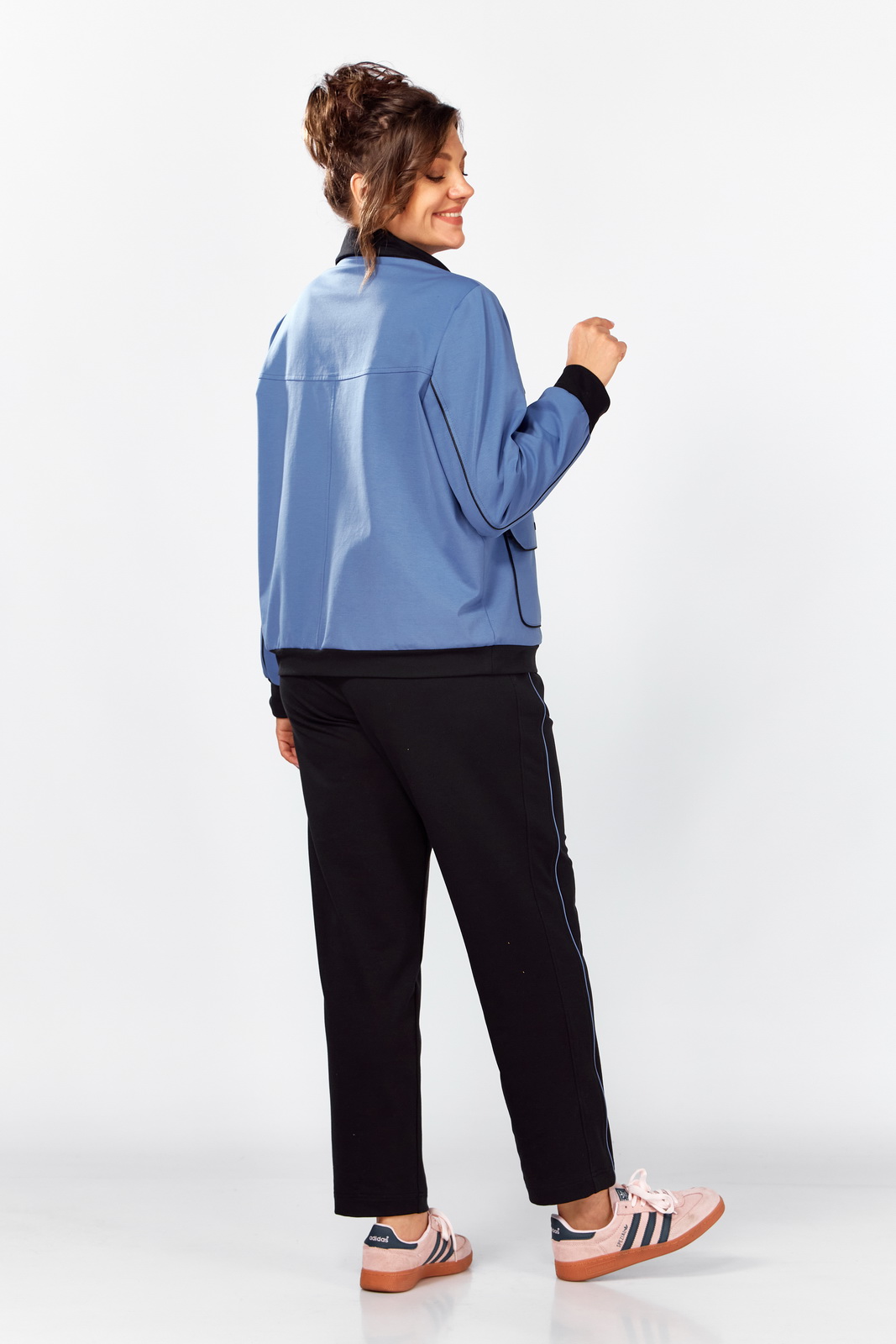Описание : Стильный, удобный, трикотажный, спортивный костюм для активной повседневной жизни, в котором сочетаются модный дизайн и комфорт. Джемпер свободного силуэта на молнии, воротник отложная стойка. Накладные карманы, клапаны, кокетка и рукава декорированы отделаны контрастным черным кантом, в цвет брюк. Брюки на резинке с боковыми карманами и подрезами с декоративным кантом. Костюм отлично садится и скрывает недостатки фигуры из-за хорошо продуманных конструктивных линий и пропорций.