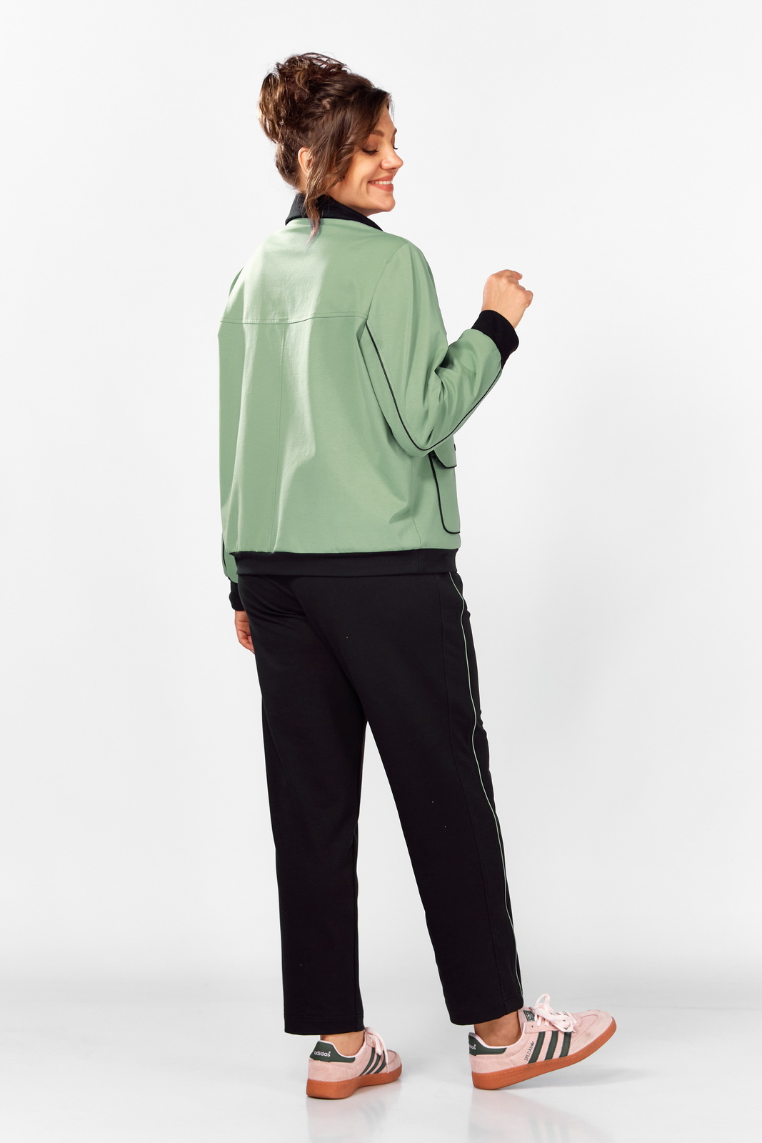 Описание : Стильный, удобный, трикотажный, спортивный костюм для активной повседневной жизни, в котором сочетаются модный дизайн и комфорт. Джемпер свободного силуэта на молнии, воротник отложная стойка. Накладные карманы, клапаны, кокетка и рукава декорированы отделаны контрастным черным кантом, в цвет брюк. Брюки на резинке с боковыми карманами и подрезами с декоративным кантом. Костюм отлично садится и скрывает недостатки фигуры из-за хорошо продуманных конструктивных линий и пропорций.