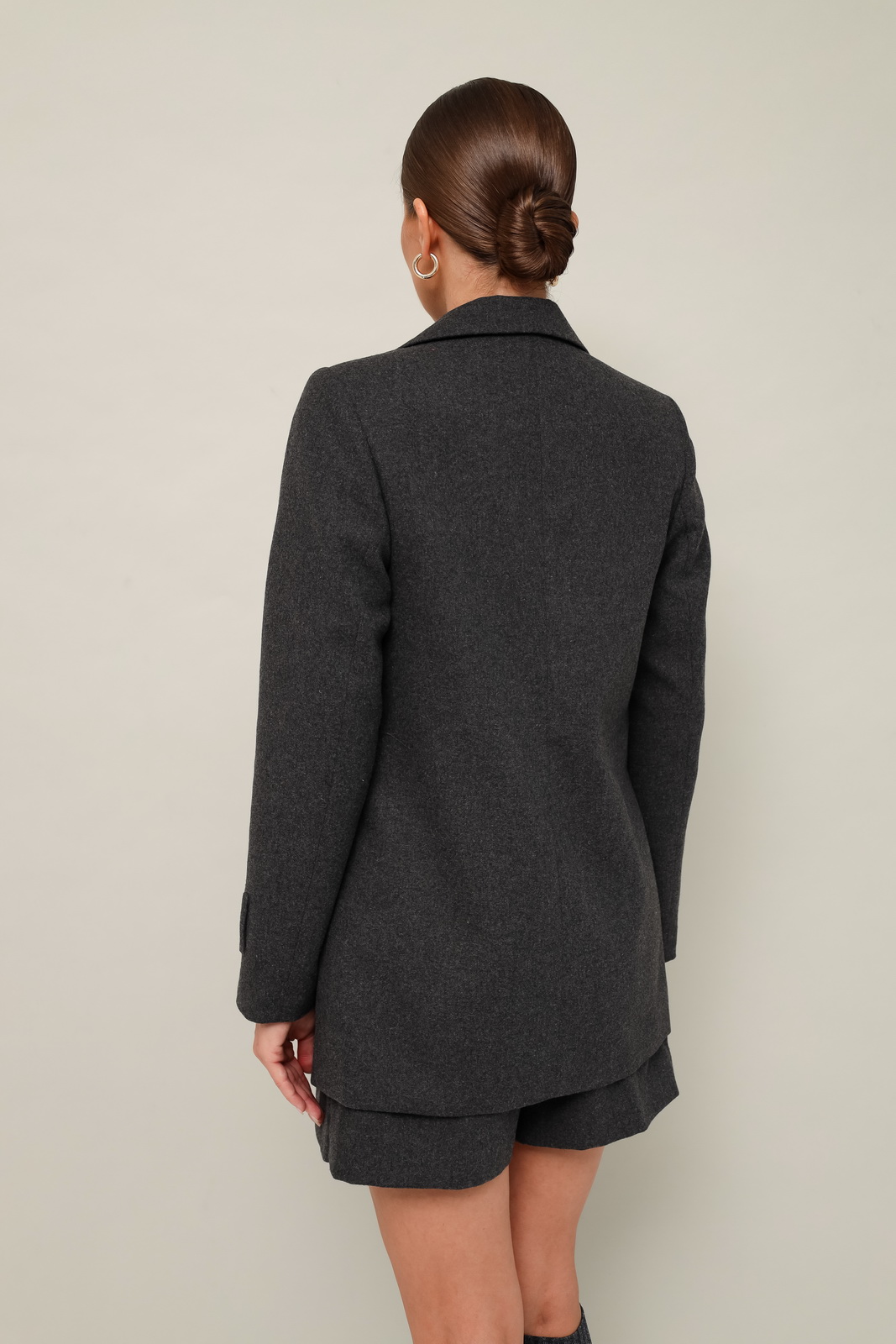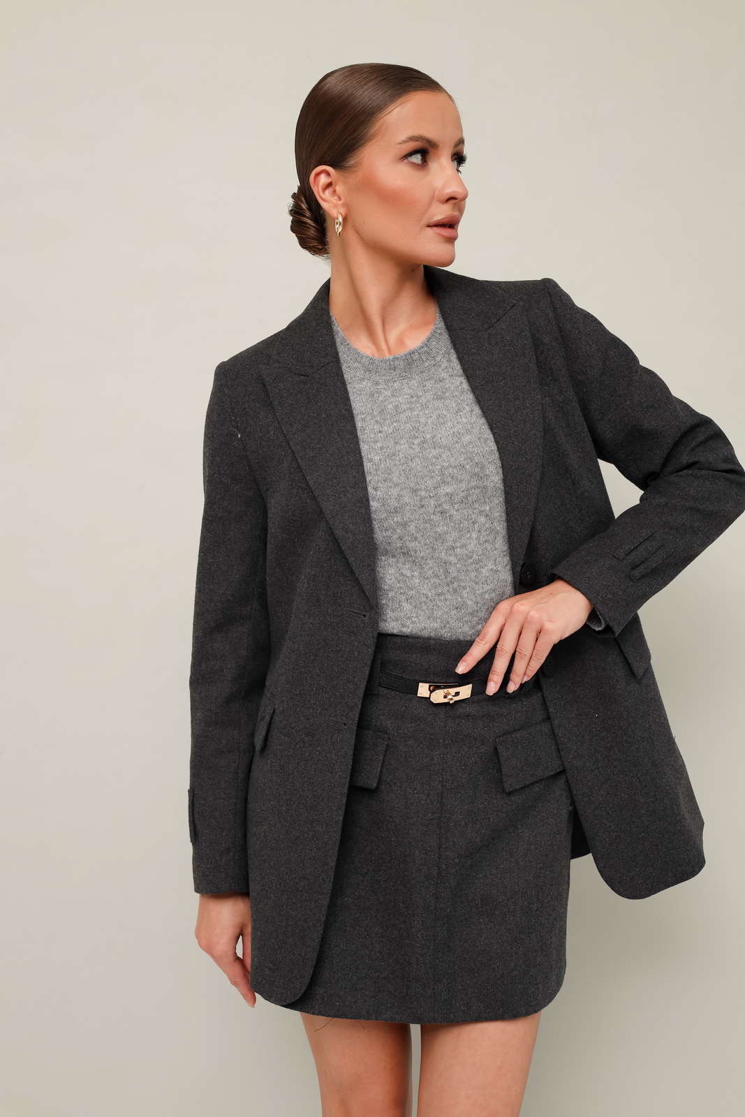 Описание: Стильный 2-предметный комплект, состоящий изжакета и юбки-шорт. Комплект выполнен из качественной костюмной ткани.