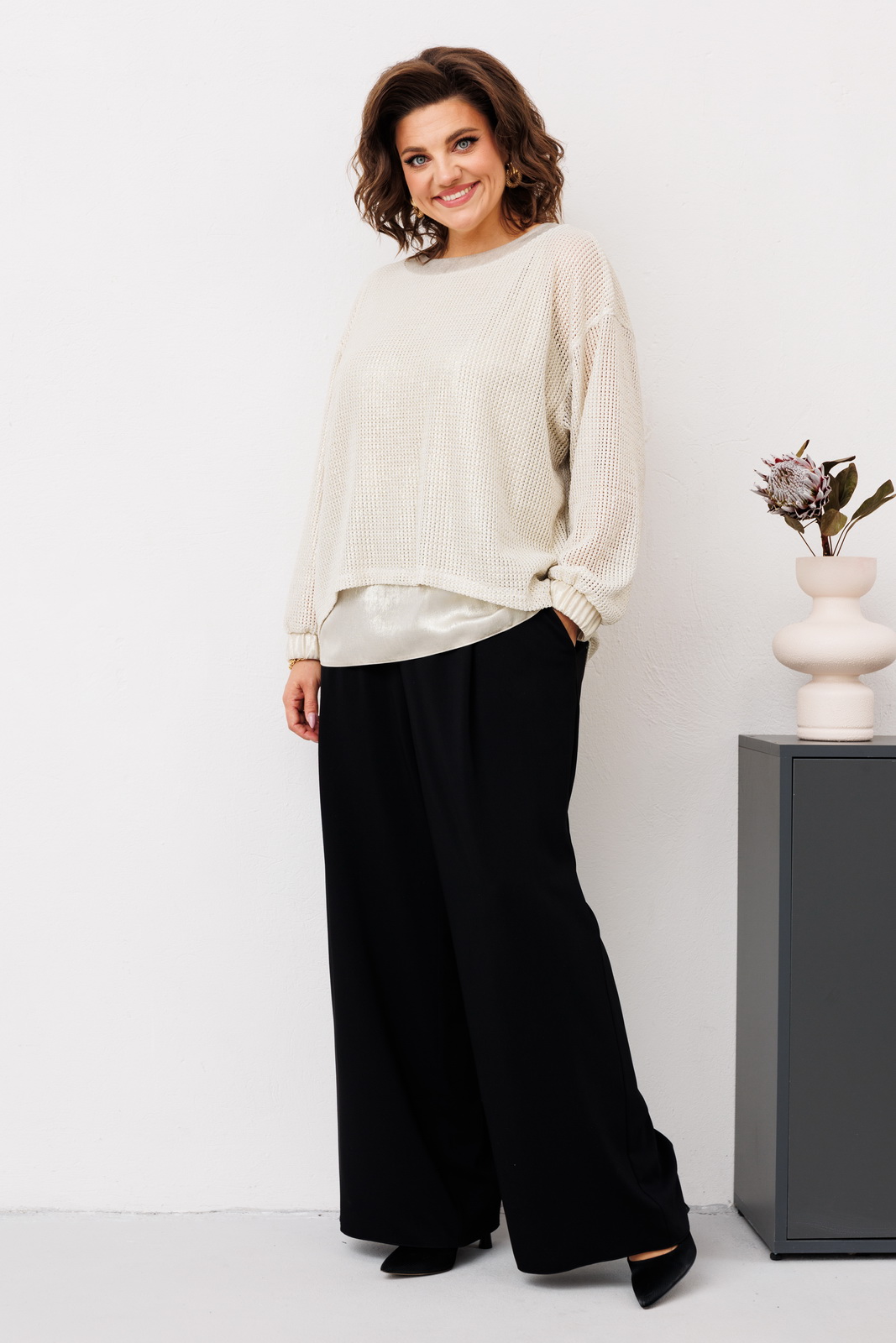 Состав ткани: Джемпер: 85% ПЭ, 10% хлопок, 5% спандекс. Топ: 100% ПЭ. Брюки: 85% ПЭ, 15% вискоза.