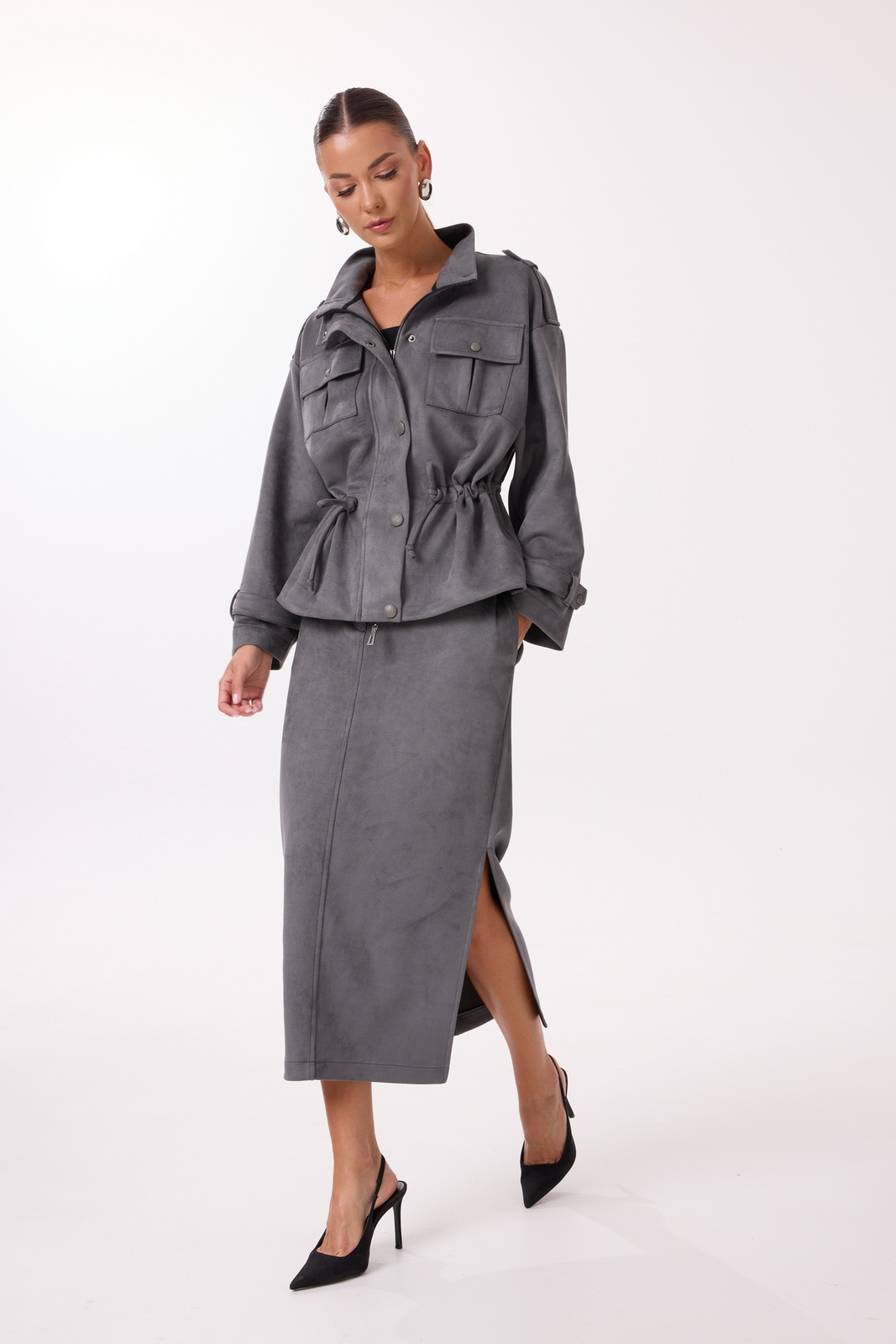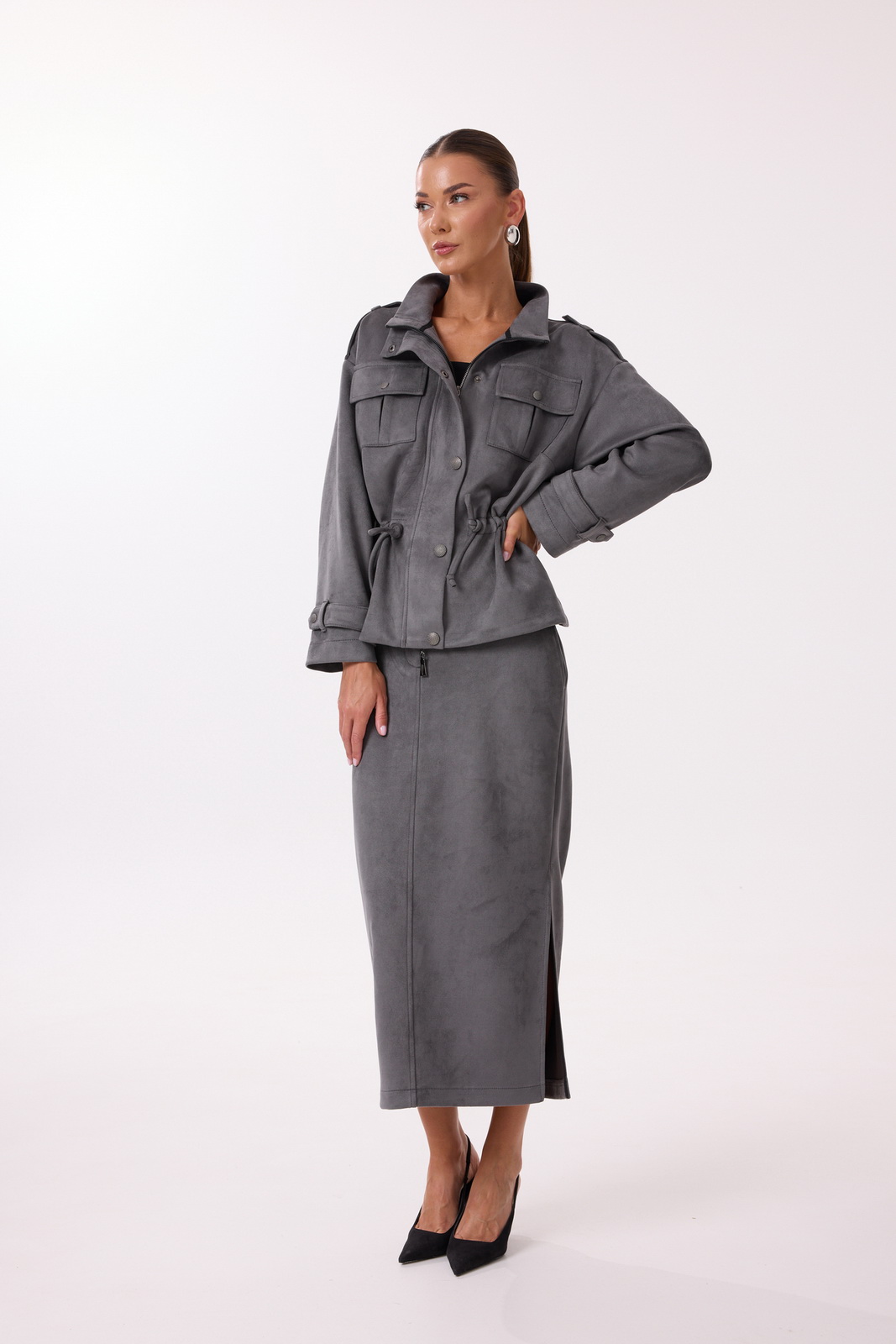 Длина жакета по спинке 44р. – 57 см, 54р. – 58 см. Длина юбки по боковому шву 89,5 см.