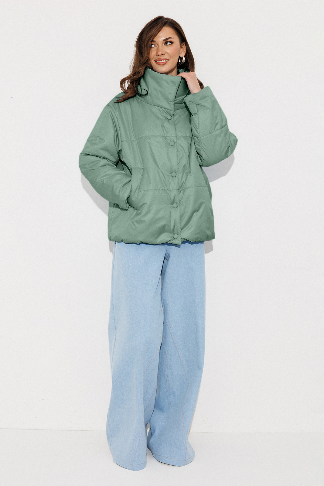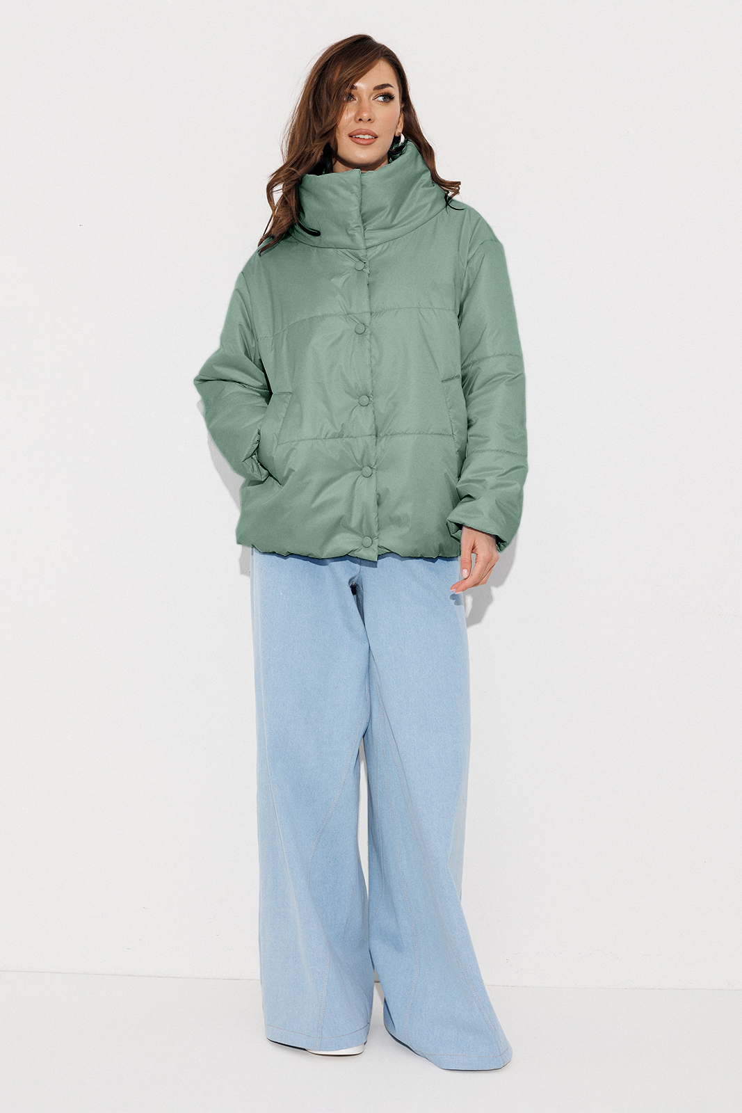 Описание: Куртка демисезонная (t до -5С) прямого силуэта с втачным рукавом внизу на резинке и со спущенной линией плеча. Полочка с центральной застёжкой на кнопки и карманы-листочки. По спинке нашивка. Воротник-стойка с застежкой на пришивные кнопки. Полочка и спинка по низу на резинке. Куртка из плащевой ткани со стежкой на синтепоне (isosoft 150г/м²) и подкладке.