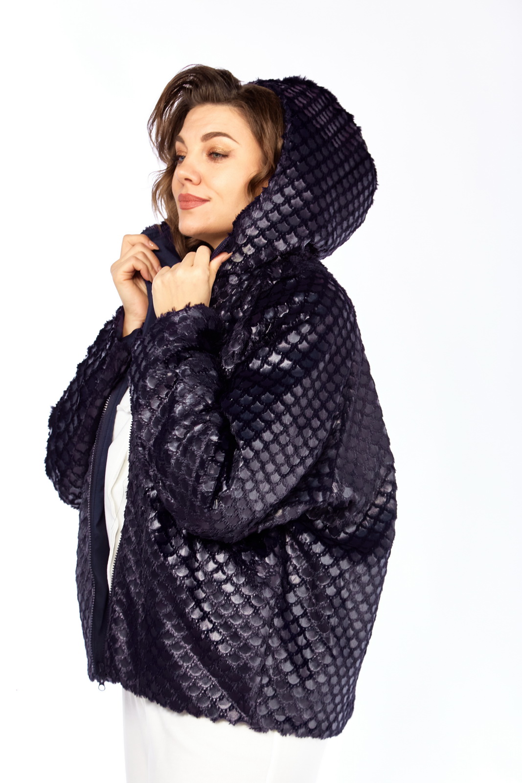 Описание: Куртка женская, О-образного силуэта с центральной застежкой на молнию. Спинка простая. Перед с боковыми карманами “с листочкой”. Рукав-реглан . Воротник-капюшон. По низу куртки в подкладке обработана кулиса со шнуром и регулятором. Температурный режим до 0 градусов.