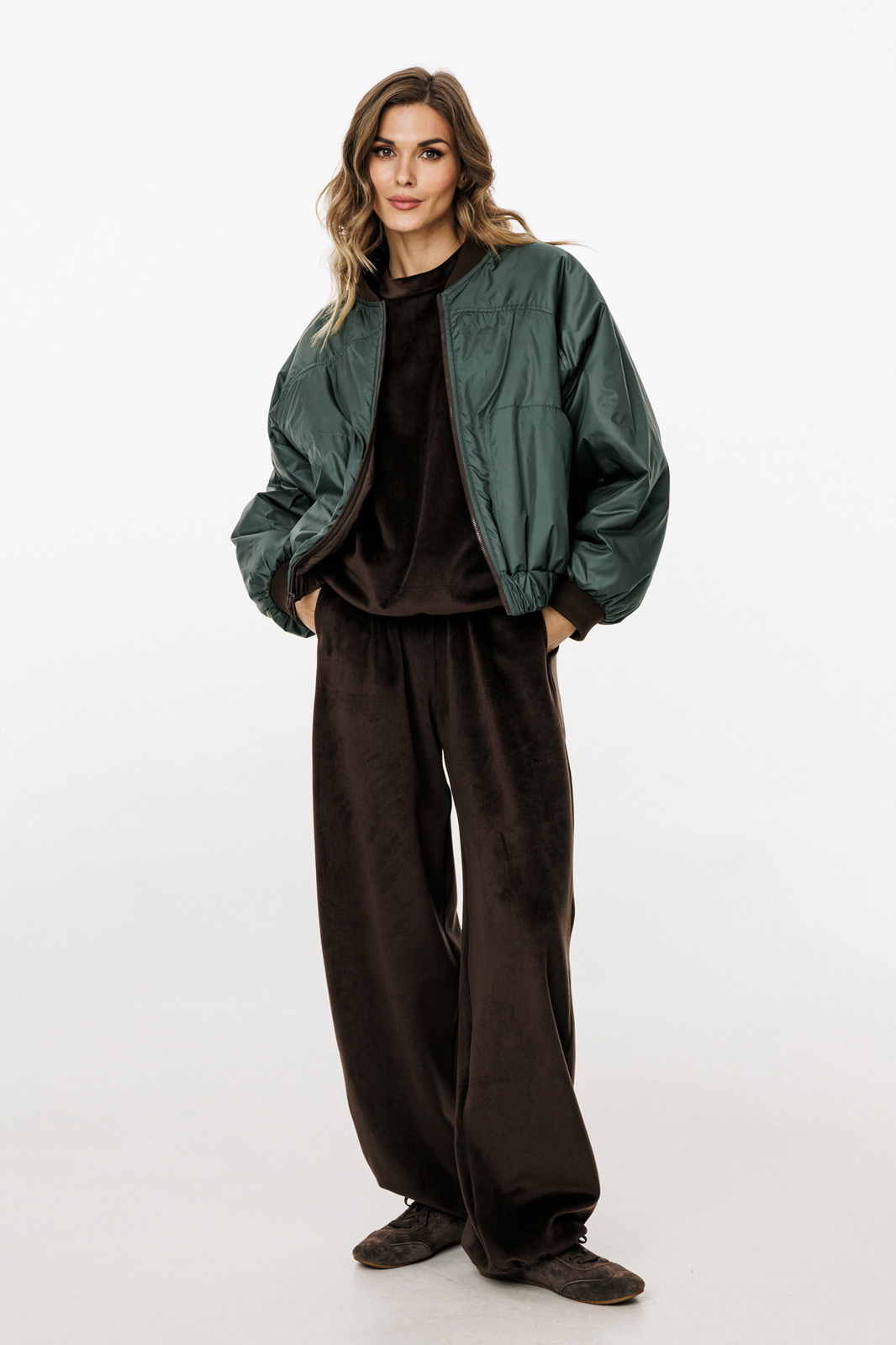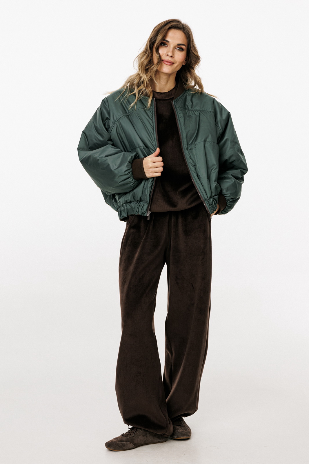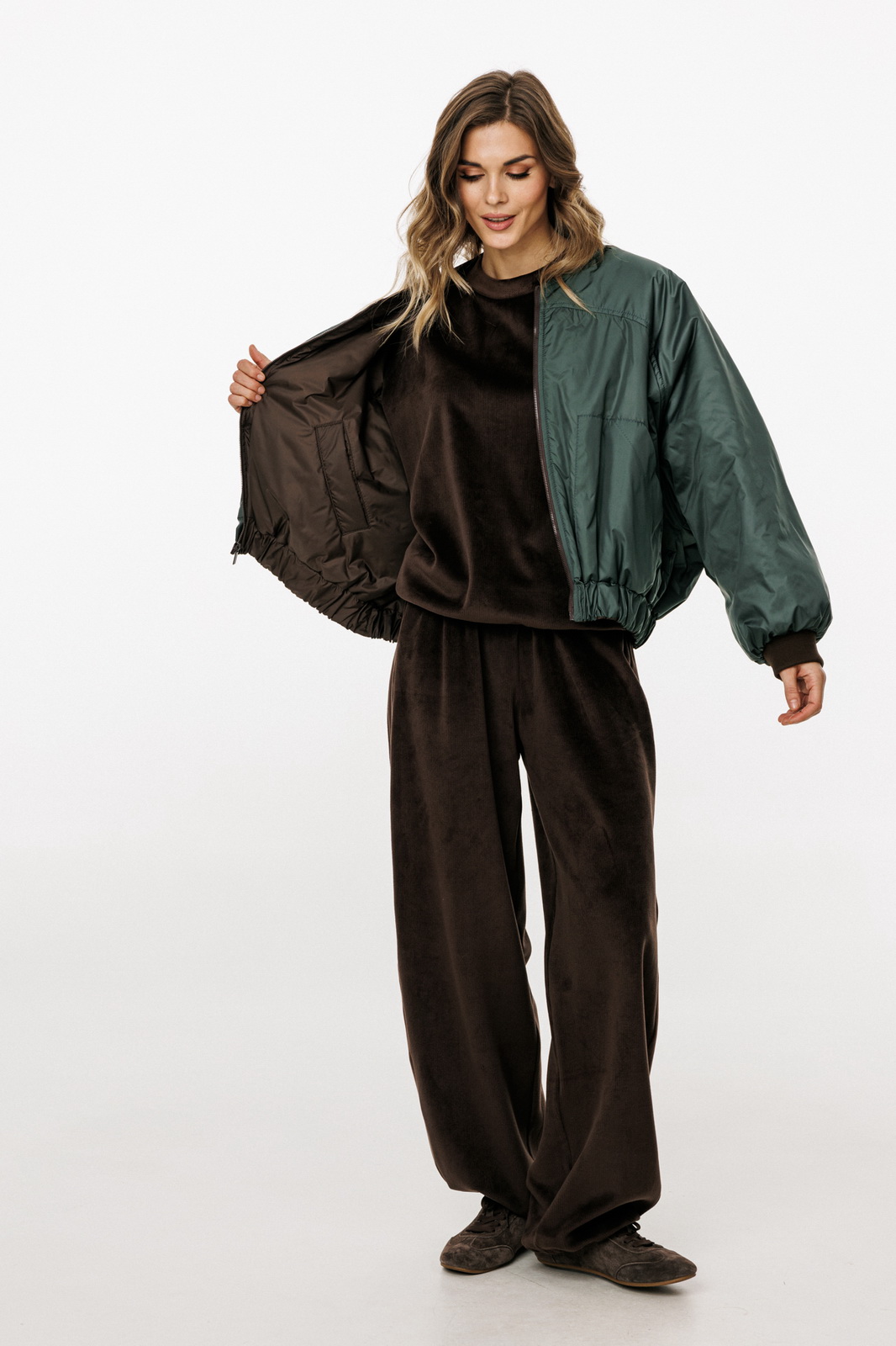 Описание: Куртка выполнена из плащевой ткани с утеплителем Isosoft. Куртка О-образного силуэта, длиной выше линии бедер. Куртка двусторонняя. Спереди застежка на молнию и карманы. Рукав покроя кимоно переходящий в кокетки спереди и по спинке. Низ рукава на притачной манжете из трикотажного довяза. Горловина округлой формы с вортником-стойкой из трикотажного довяза. Низ куртки на притачном поясе с эластичной тесьмой внутри. Одна из сторон куртки декорирована на спинке нашивкой из натуральной кожи.