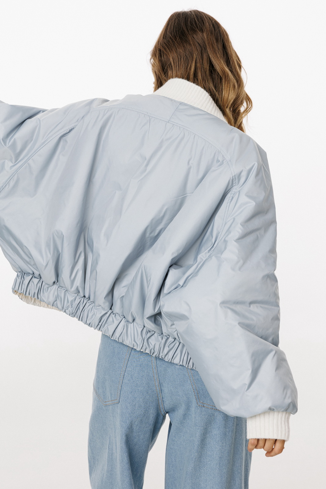 Описание: Куртка выполнена из плащевой ткани с утеплителем Isosoft. Куртка О-образного силуэта, длиной выше линии бедер. Куртка двусторонняя. Спереди застежка на молнию и карманы. Рукав покроя кимоно переходящий в кокетки спереди и по спинке. Низ рукава на притачной манжете из трикотажного довяза. Горловина округлой формы с вортником-стойкой из трикотажного довяза. Низ куртки на притачном поясе с эластичной тесьмой внутри. Одна из сторон куртки декорирована на спинке нашивкой из натуральной кожи.